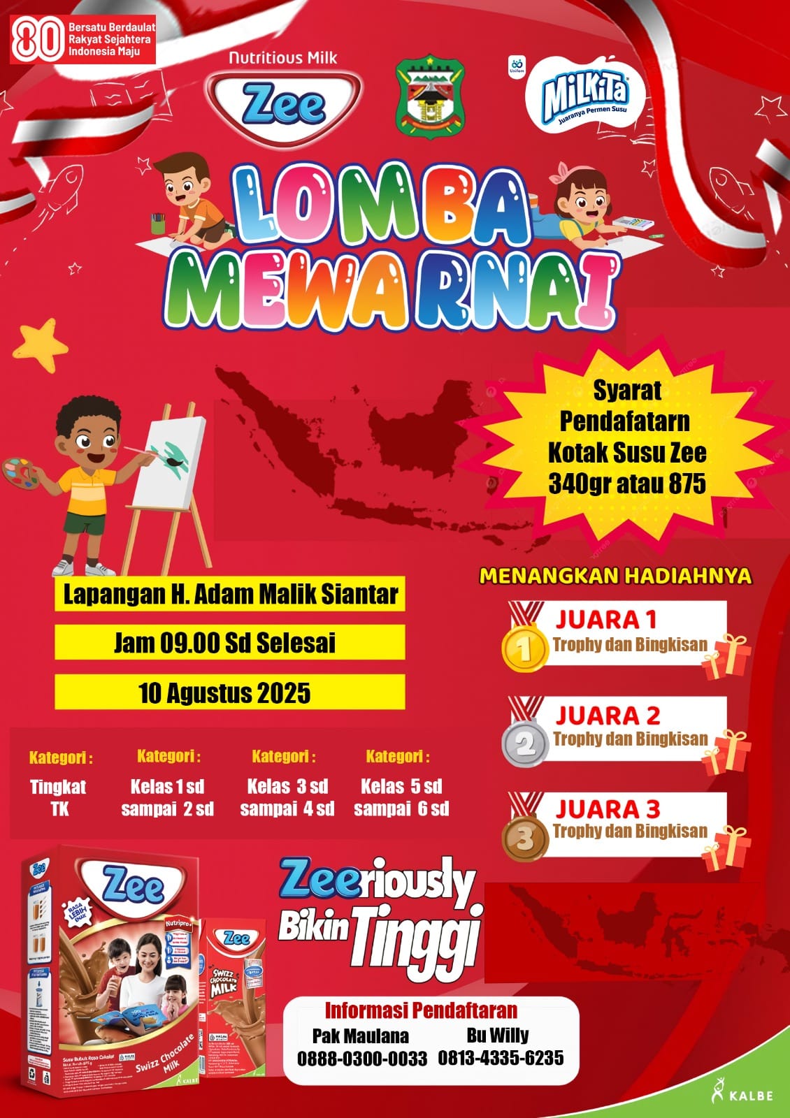 Kegiatan lomba yang bekerjasama dengan susu Zee tersebut akan diselenggarakan di Lapangan Adam Malik, Minggu (10/08/2025) mulai sekitar pukul 09.00 WIB.