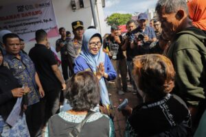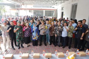 Wali Kota Pematangsiantar dr Susanti Dewayani SpA menghadiri Launching dan Simbolis Penyaluran Bantuan Cadangan Pangan Pemerintah (CPP) Tahun 2024, di Kantor Pos Cabang Pematangsiantar, Jalan Sutomo, Jumat (02/02/2024).