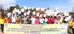 SK tersebut langsung diserahkan oleh Bupati Simalungun Radiapoh Hasiholan Sinaga di Ruang Terbuka Hijau (RTH) Kota Saribudolok Kecamatan Silimakuta, Kabupaten Simalungun, Selasa (25/7/2023).