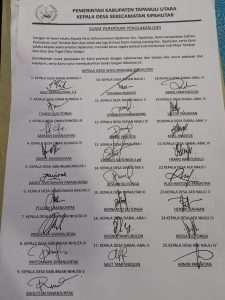 Kesepakatan tersebut tertuang dalam kertas secara tertulis yang di tanda tangani sebanyak 25 kepala desa sekecamatan Sipahutar.