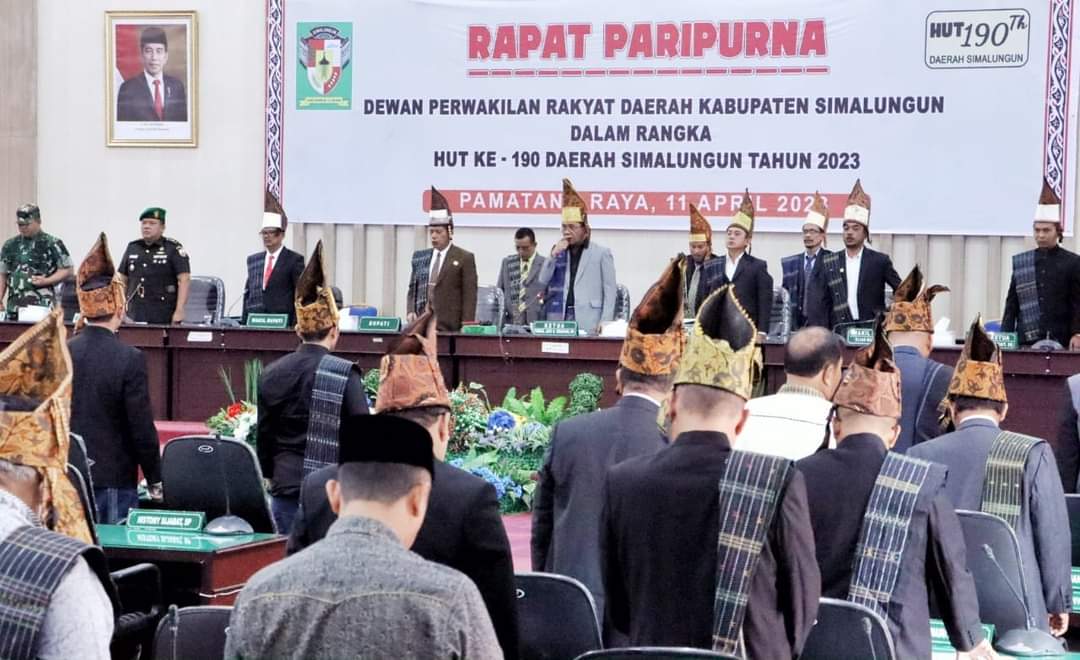 Dewan Perwakilan Rakyat Daerah (DPRD) Kabupaten Simalungun menggelar rapat paripurna dalam rangka Hari Ulang Tahun (HUT) ke 190 Daerah Simalungun Tahun 2023, di gedung DPRD Kabupaten Simalungun, Pamatang Raya, Sumut, Selasa (11/4/2023).