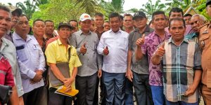 Bupati Simalungun Radiapoh Hasiholan Sinaga didampingi Anggota DPRD Hendra Sukmana Sinaga dan Fao Saut Sinaga serta Kadis PUTR (Pekerjaan Umum dan Tata Ruang) Hotbinson Damanik melakukan kunjungan kerja (kunker) di Kecamatan Bandar, Simalungun, Senin (4/9/2023).