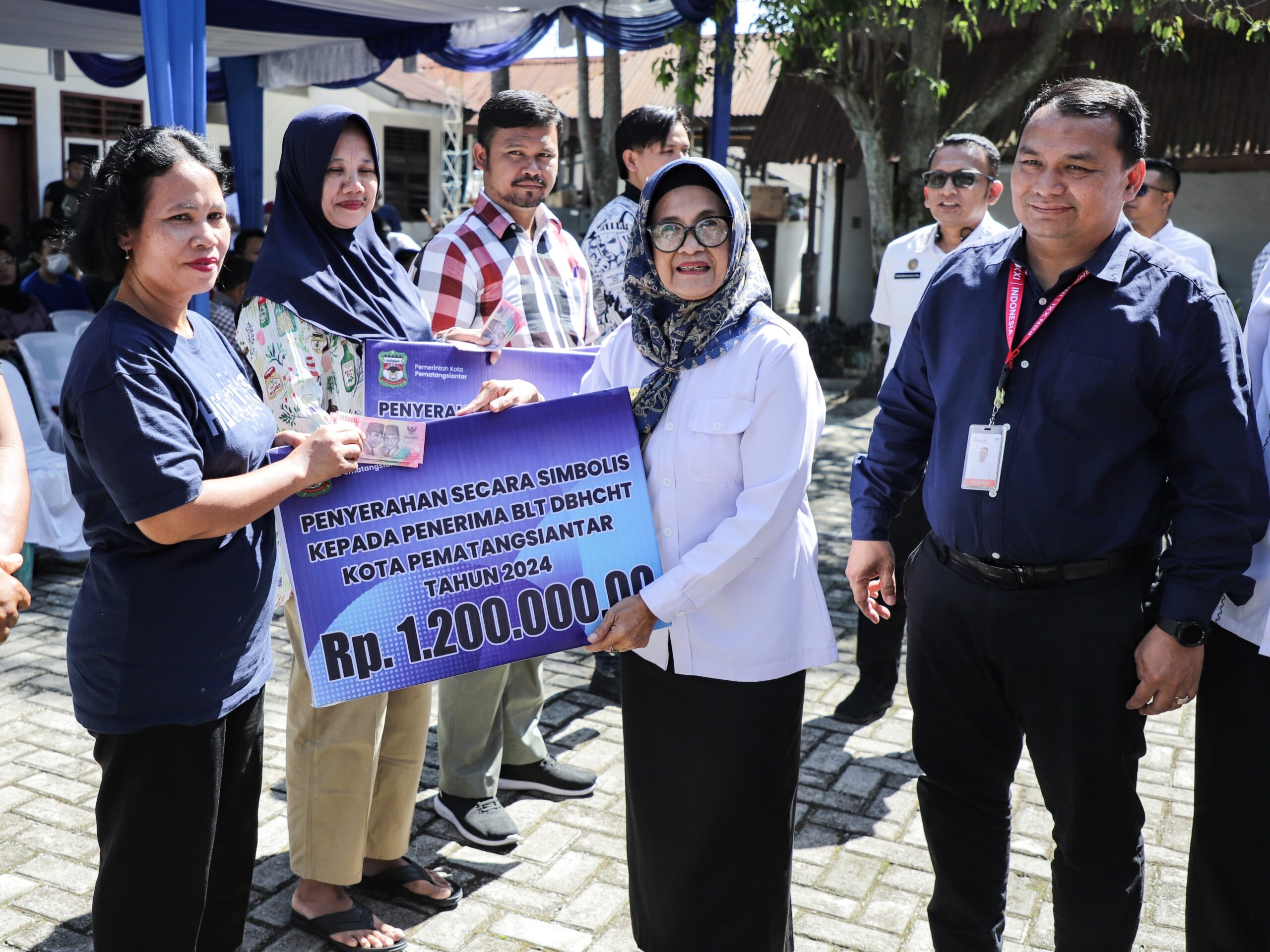 Sebanyak 608 Keluarga Penerima Manfaat (KPM) menerima Dana Bagi Hasil Cukai Hasil Tembakau (DBH-CHT) yang diserahkan langsung oleh Wali Kota Pematangsiantar dr Susanti Dewayani SpA.
