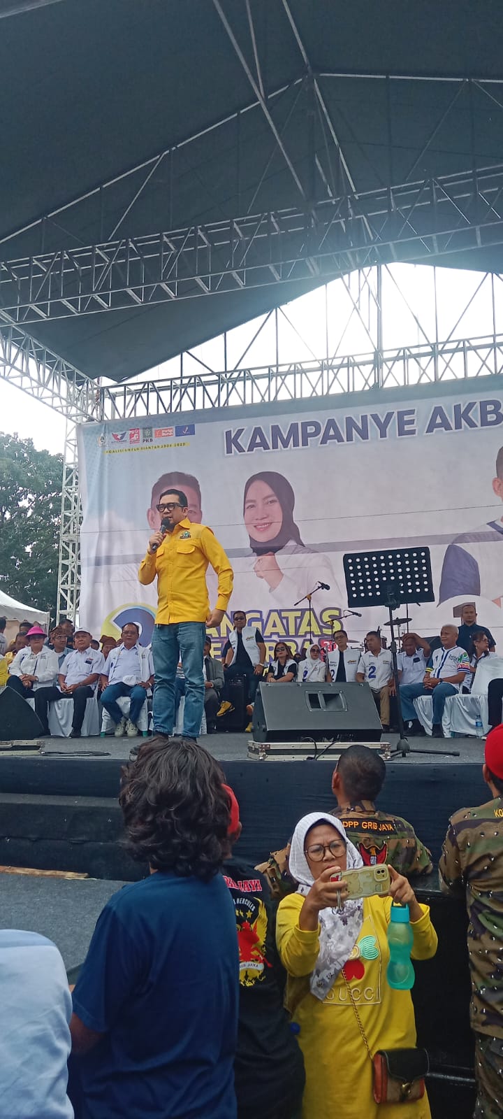 “Tuhan tidak izinkan masyarakat kepanasan dan kehujanan saat hadir di kampanye akbar ini,” ujar Mangatas mengawali orasi politiknya.