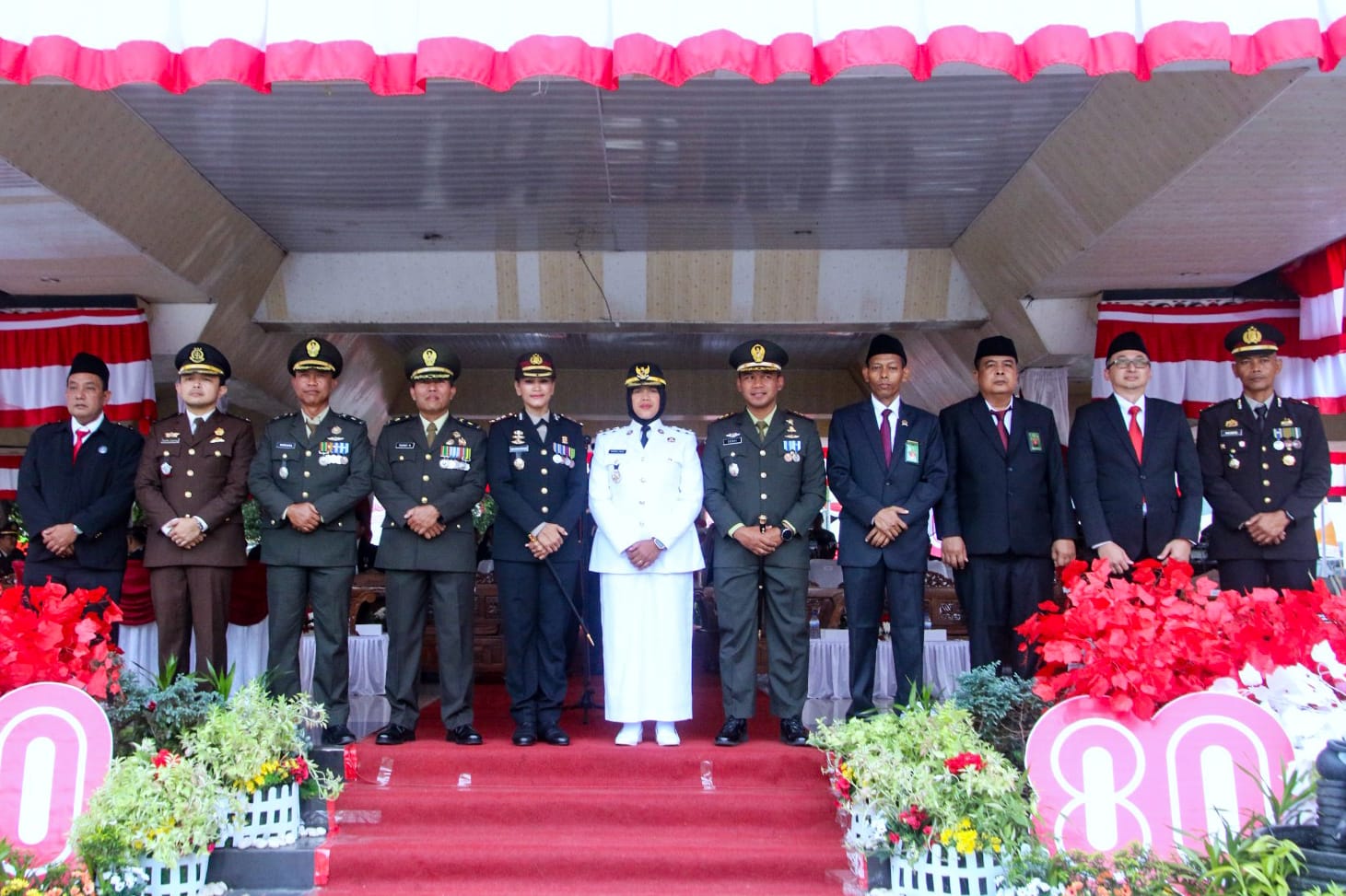 Wali Kota Pematangsiantar Wesly Silalahi SH MKn diwakili Wakil Wali Kota Herlina menghadiri upacara Penurunan Bendera Merah Putih Peringatan Hari Ulang Tahun (HUT) ke-80 Kemerdekaan Republik Indonesia (RI) di Lapangan Adam Malik, Minggu (17/08/2025).