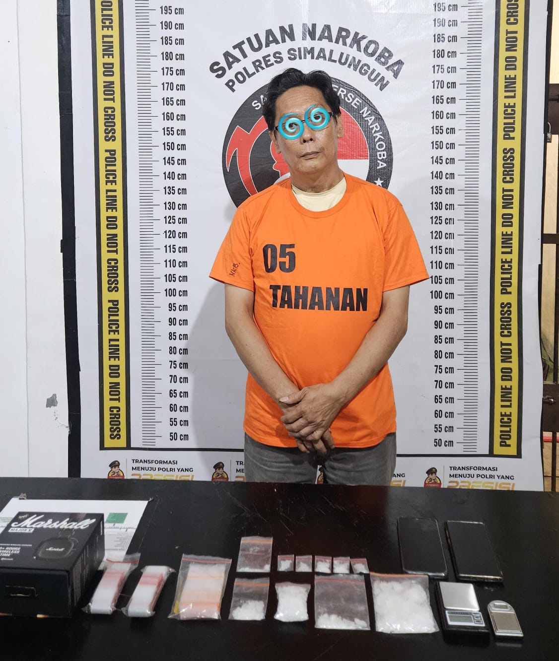 Dalam operasi yang dilakukan oleh Satuan Narkoba Polres Simalungun, petugas berhasil menangkap seorang tersangka berinisial ANTON alias ASIONG (53 tahun). Tersangka merupakan seorang wiraswasta yang beralamat di Huta Purwosari Atas, Nagori Dolok Mainu, Kecamatan Dolok Batu Nanggar, Kabupaten Simalungun. Petugas berhasil mengamankan tersangka setelah melakukan pengintaian berdasarkan informasi dari masyarakat.