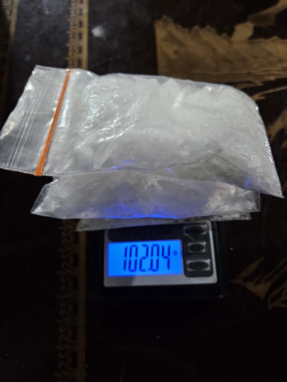 Dari penangkapan tersebut, petugas berhasil mengamankan barang bukti berupa 2 bungkus plastik klip besar, 3 bungkus plastik klip sedang, dan 5 bungkus plastik klip kecil yang diduga berisi narkotika jenis sabu dengan berat total 102,04 gram (berat brutto). Selain itu, petugas juga menyita 2 butir pil ekstasi merk Kerang kuning dengan berat 1,02 gram, 1 unit HP Android merk Samsung, 1 unit HP Android merk Xiaomi, 2 unit timbangan digital, 3 bal plastik klip kosong, 1 buah kotak Headphone, dan 1 unit sepeda motor merk Kawasaki KLX.