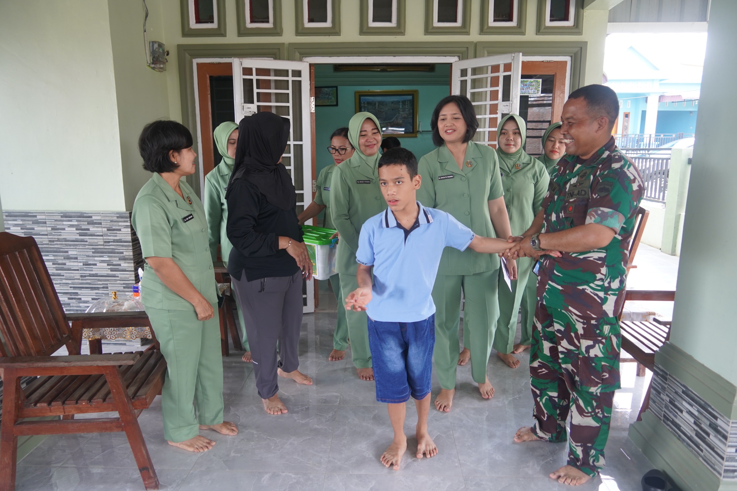 Kemudian, rombongan melanjutkan perjalanan ke rumah Sertu Ayong Hardianto, memberikan tali asih kepada putranya, Daffa Rahardian, yang juga memiliki kebutuhan khusus.