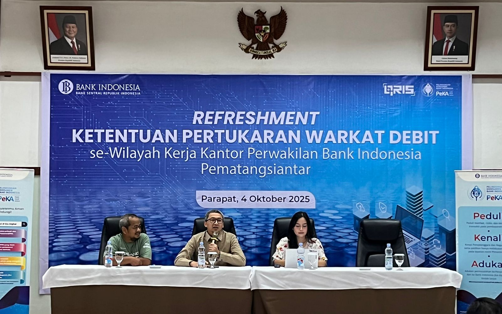 Kantor Perwakilan Bank Indonesia (KPwBI) Pematangsiantar menggelar kegiatan Refreshment Ketentuan Pertukaran Warkat Debit (PWD) se-Wilayah Kerja Pematangsiantar, Kisaran, dan Rantauprapat di Hotel Niagara, Parapat ( 03/10/2025).