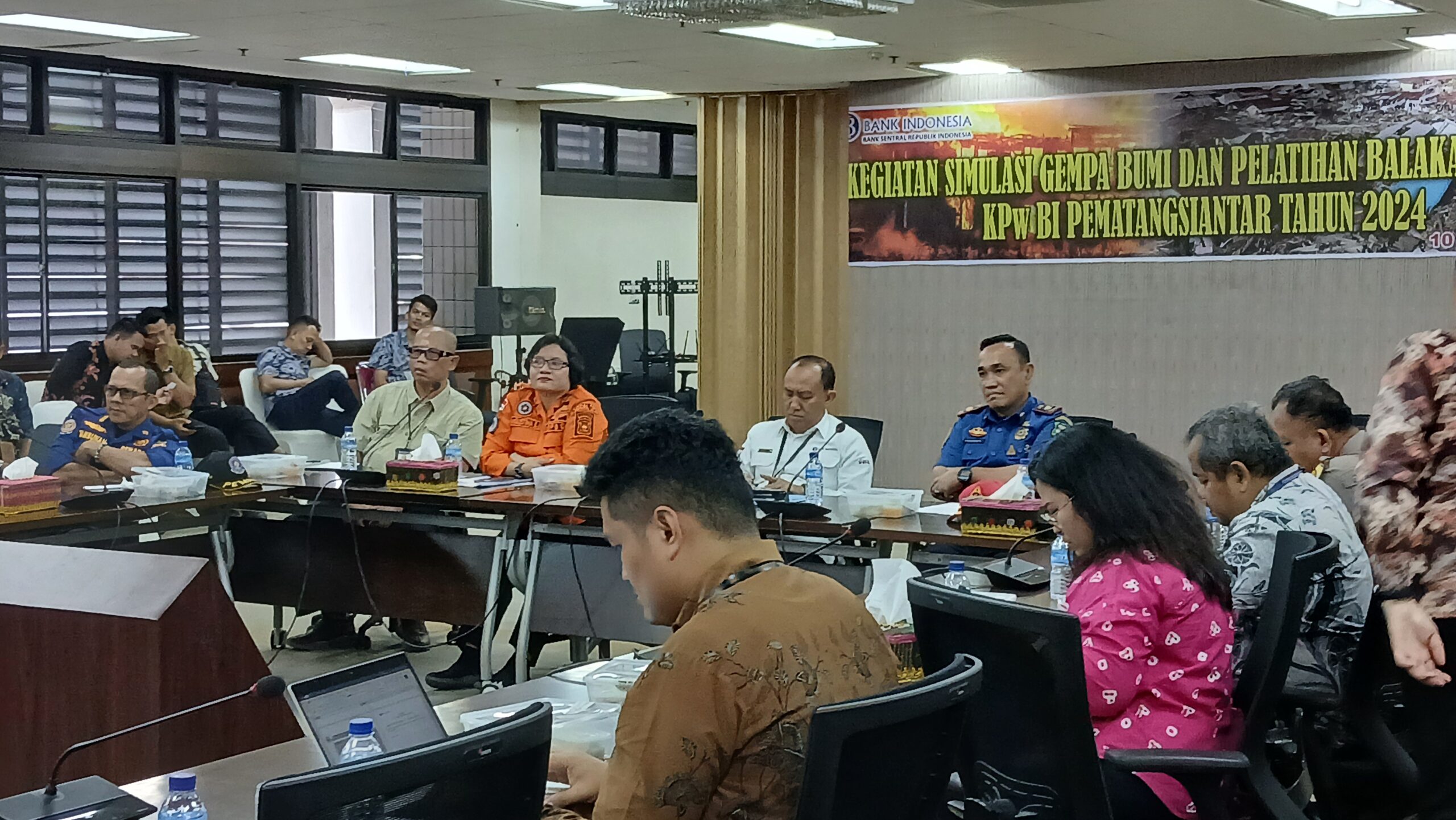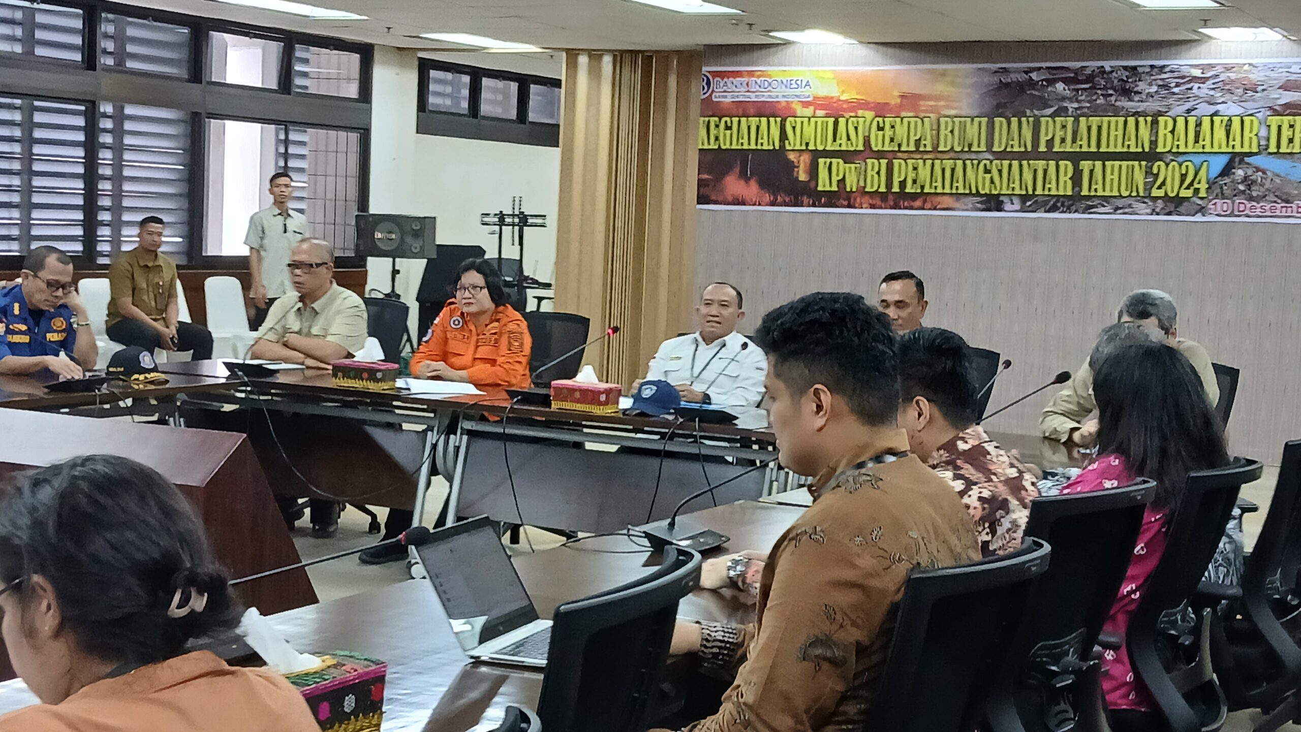 Kantor Perwakilan Bank Indonesia (KPw-BI) Pematang Siantar menggelar simulasi gempa bumi dan pelatihan terpadu yang bertujuan untuk meningkatkan kesiapsiagaan pegawai dalam menghadapi berbagai jenis bencana, seperti gempa bumi, banjir, dan kebakaran.