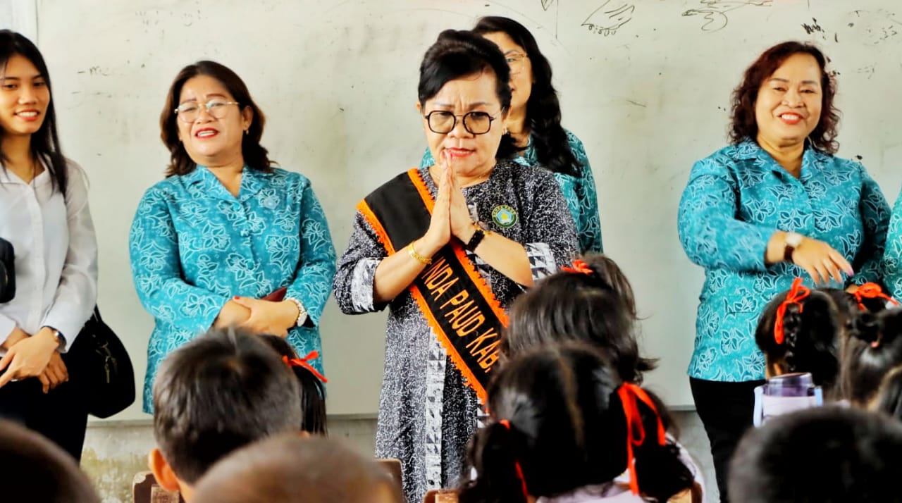 Bunda PAUD (Pendidikan Anak Usia Dini) Kabupaten Simalungun Ny. Ratnawati Radiapoh Hasiholan Sinaga melakukan monitoring penerapan program Transisi PAUD ke SD Kelas Awal yang menyenangkan, di SD Negeri 091630 Pematang Kerasaan. Kecamatan Pamatang Bandar, Simalungun, Sumut, Selasa (26/9/2023).