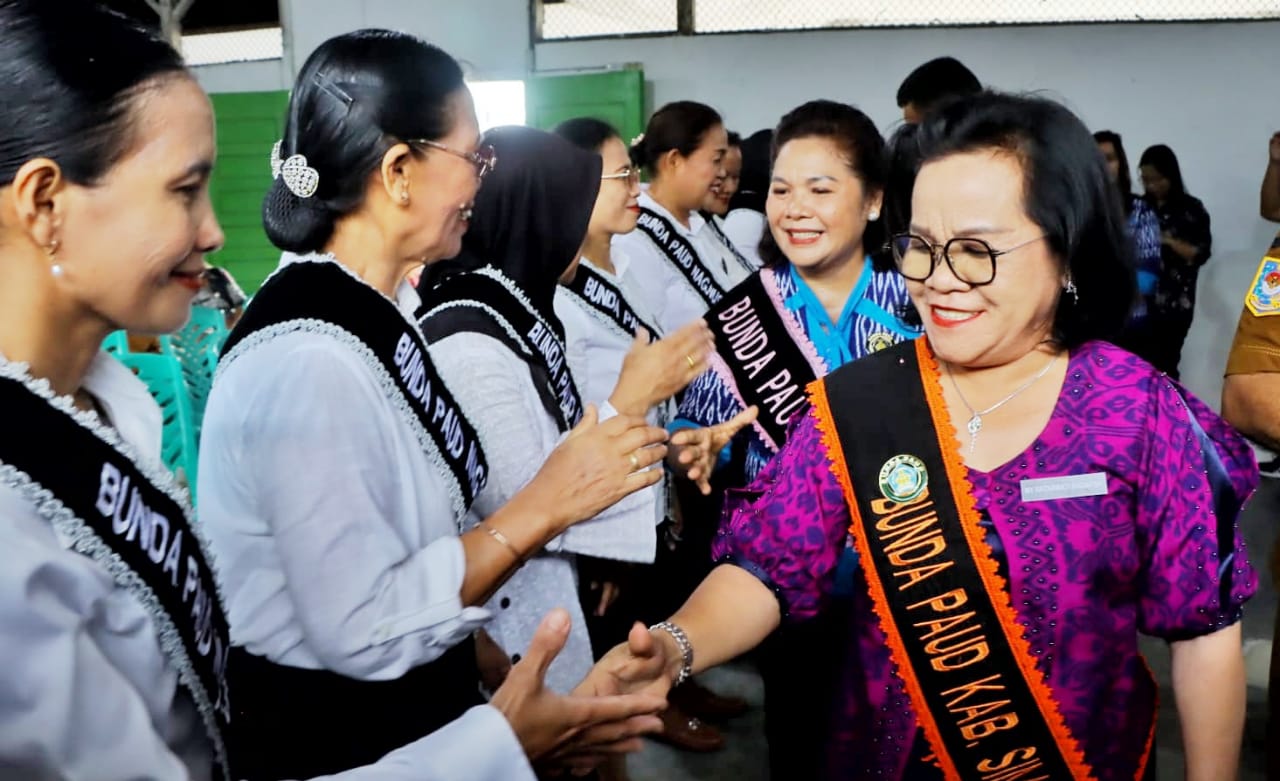 Bunda PAUD Kabupaten Simalungun Ratnawaty Radiapoh Hasiholan Sinaga mengukuhkan Bunda PAUD Nagori Se-Kecamatan Siantar, di gedung Pertemuan Kantor Pangulu Rambung Merah Kecamatan Siantar, Simalungun, Jum’at (15/9/2023)