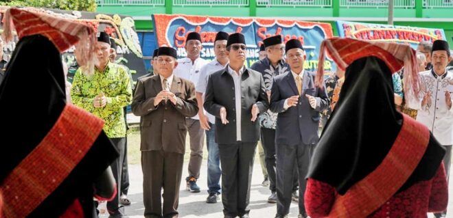 Bupati Simalungun Radiapoh Hasiholan Sinaga bersama Wakil Bupati (Wabup) H Zonny Waldi menghadiri acara wisuda Santriwan/Wati Pondok Pesantren (Ponpes) Al-Kautsar Panei Tongah, Kecamatan Panei, Simalungun, Sumut, Minggu (28/4/2024).