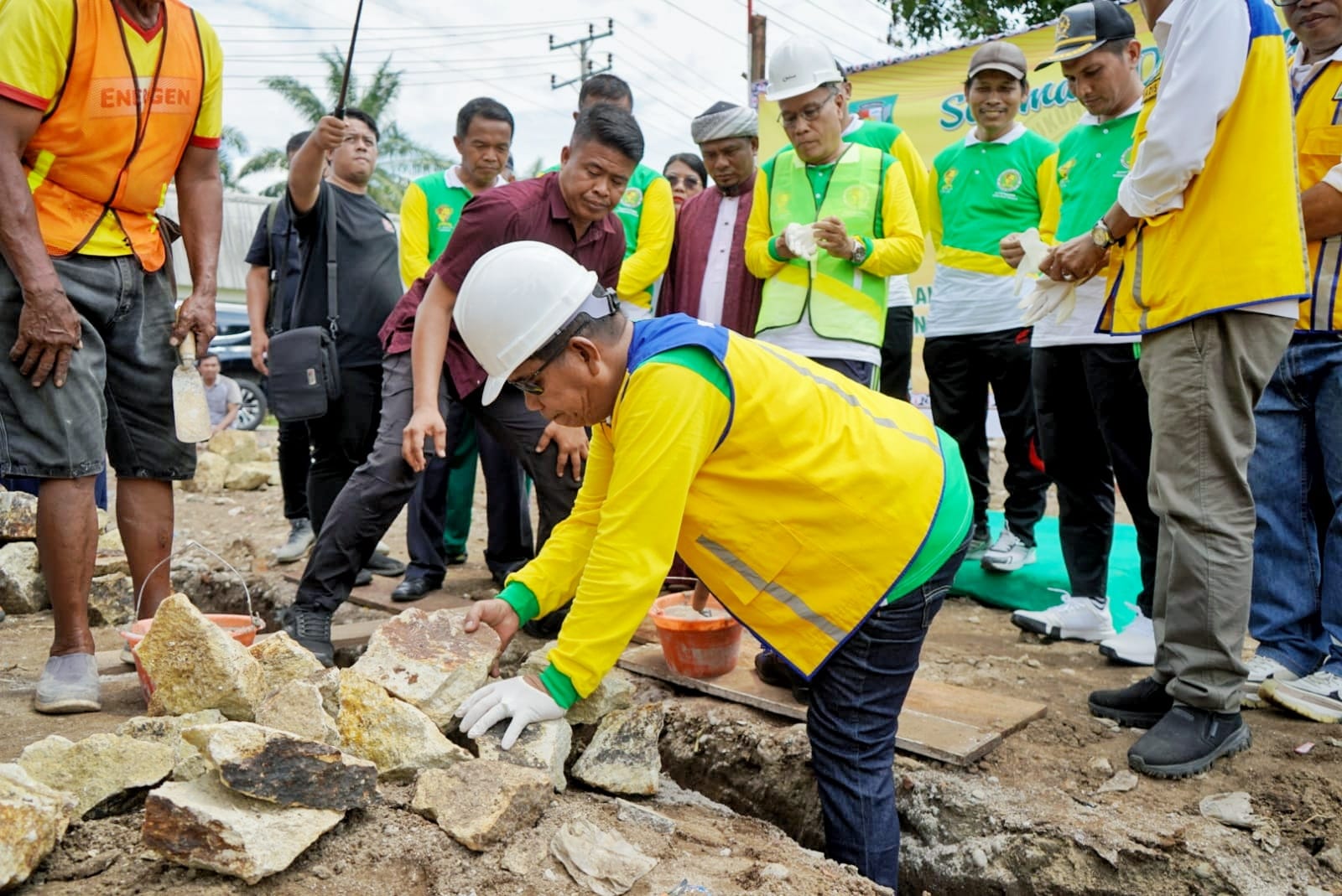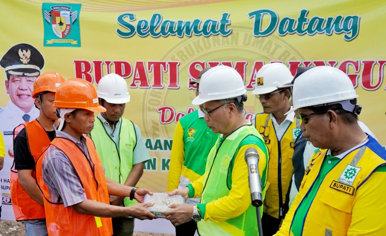 Bupati Simalungun Radiapoh Hasiholan Sinaga (RHS) melakukan peletakan batu pertama pembangunan gedung Forum Komunikasi antar Umat Beragama (FKUB) Kabupaten Simalungun, Rabu (7/8/2024).