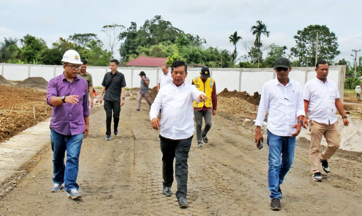 Saat peninjauan, Bupati Radiapoh mengecek tiap sudut bangunan, kualitas material hingga progres pengerjaan secara keseluruhan.