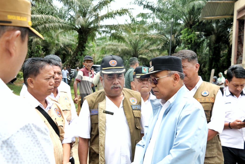 Bupati Simalungun Anton Achmad Saragih di dampingi Wakil Bupati Benny Gusman Sinaga dan Kepala Pelaksana Badan Penanggulangan Bencana Daerah (Kalak BPBD) Resman Saragih meninjau jembatan putus di Nagori Dolok Hataran Kecamatan Siantar, Simalungun, Sumut, Rabu (9/4/2025).