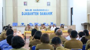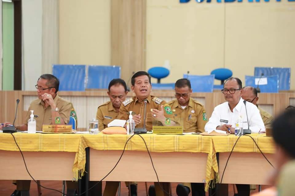 Bupati Simalungun Radiapoh Hasiholan Sinaga bersama Wakil Bupati Zonny Waldi mengadakan rapat koordinasi yang dihadiri pimpinan Organisasi Perangkat Daerah (OPD) di Balai Harungguan Djabanten Damanik,, Senin (27/3/2023).