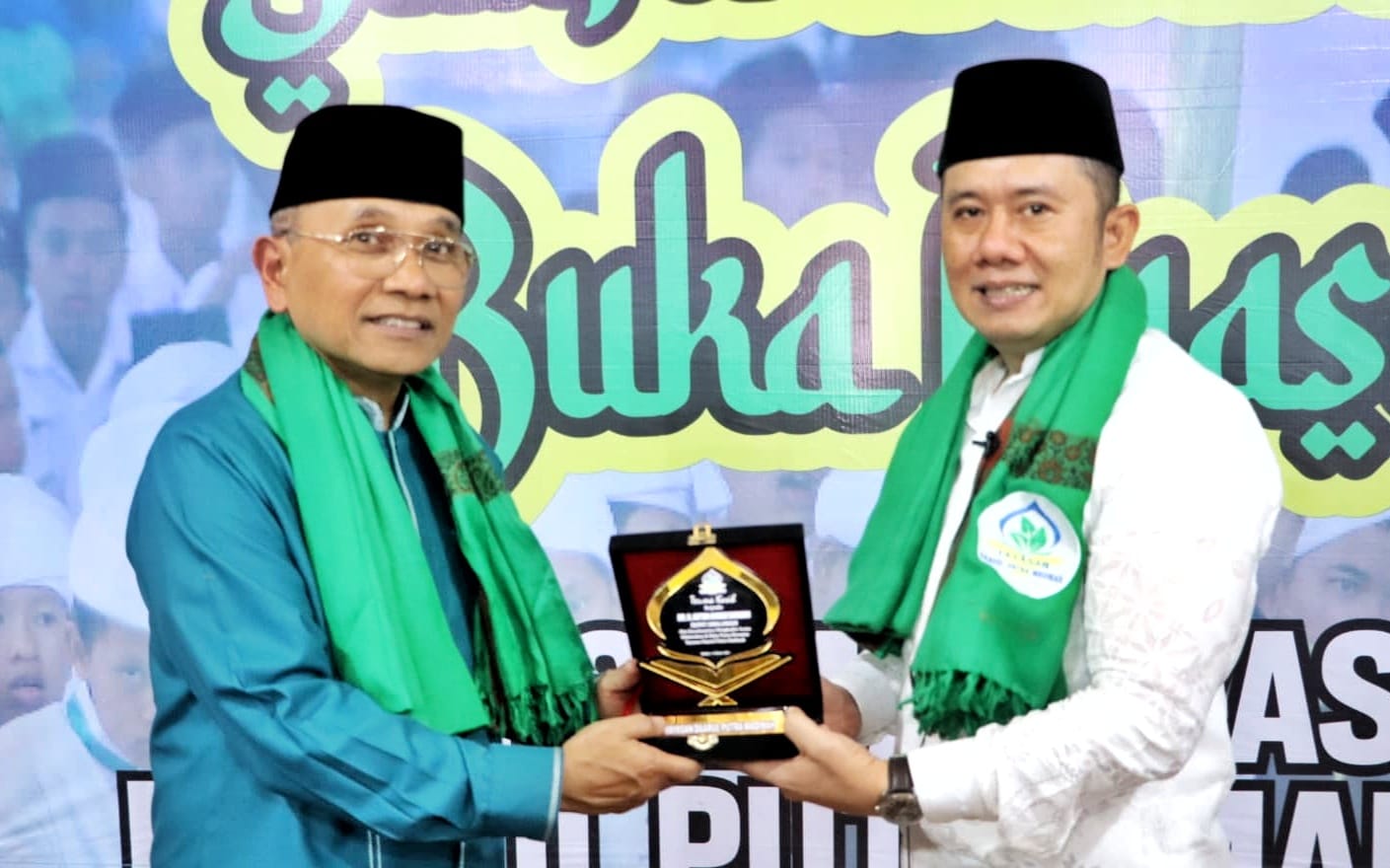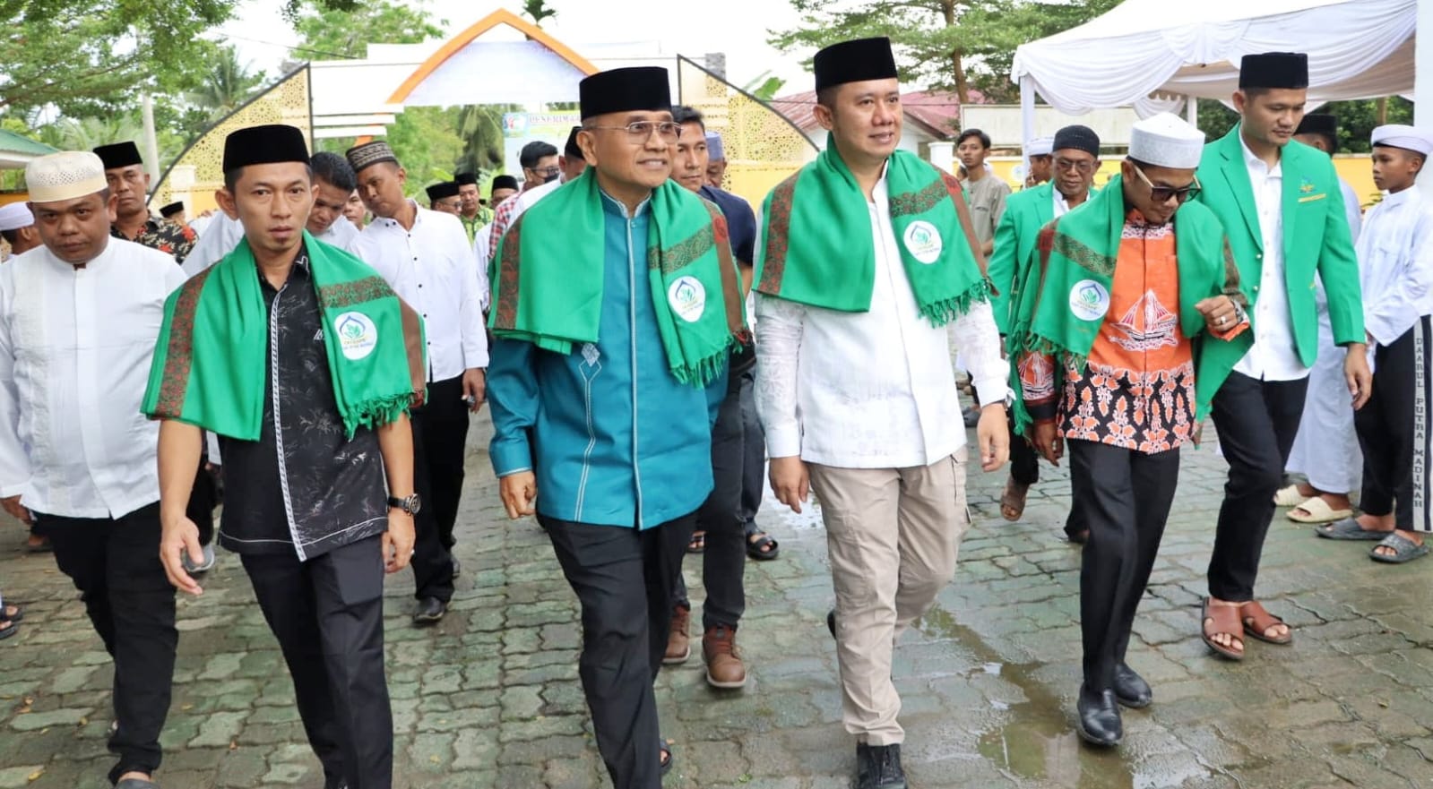 Kehadiran Bupati bersama rombongan di Yayasan Daarul Putra Madinah langsung disambut oleh pimpinan yayasan, Darma Putra Rangkuti, bersama pengurus diiringan dengan shalawatan para santri.