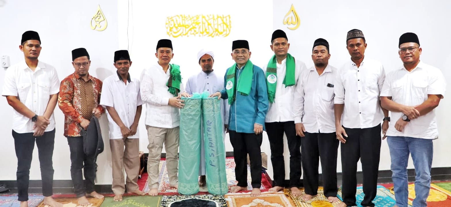 Usai melaksankan Shalat Tarawih dan Witir, Bupati Simalungun didampingin Camat Bandar Huluan Akbar Putra Siregar menyerahkan dua gulung sajadah dan loudspeaker poteble kepada pengurus Yayasan Darul Putera Madina.