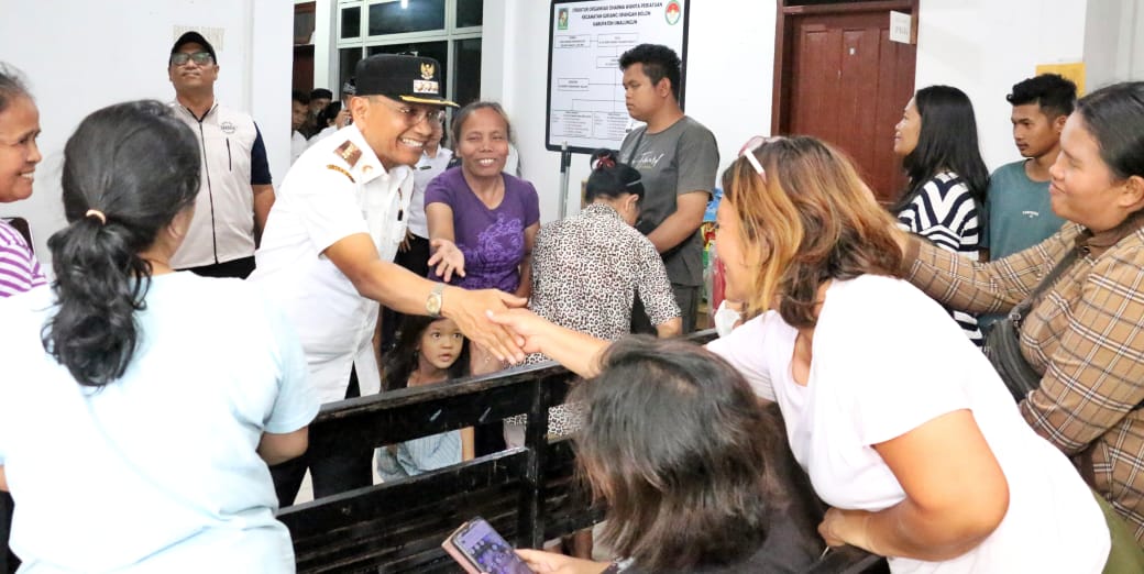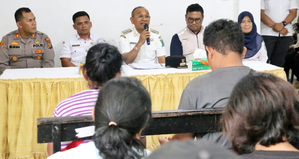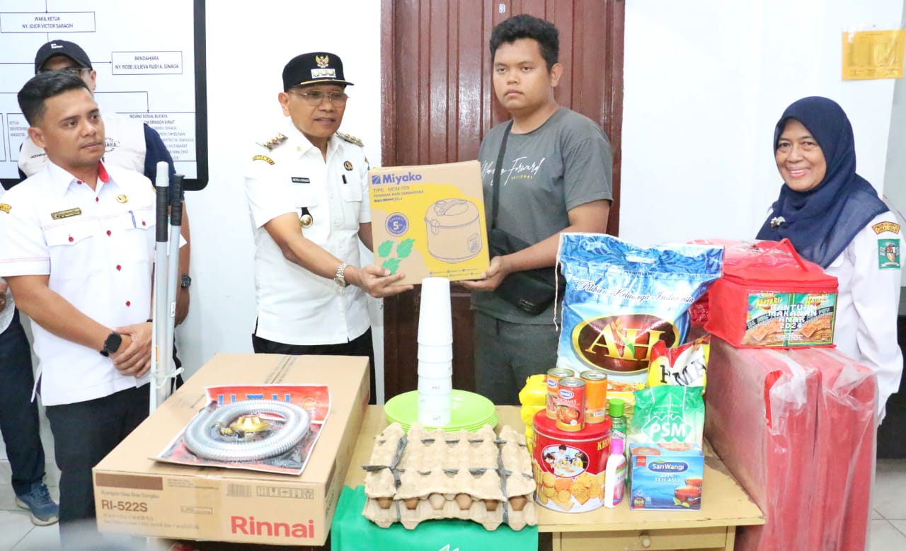 Bupati Simalungun Antos Achmad Saragih didampingi Kadis Sosial, Osnidar Marpaung dan Camat Girsang Sipangan Bolon, Viktor Sijabat, menyalurkan bantuan logistik dan atensi yang bersumber dari kementerian sosial (Kemensos) Sentra Bahagia Medan.