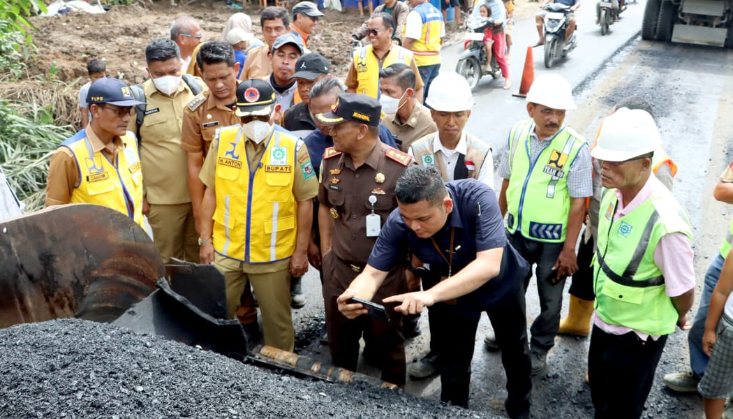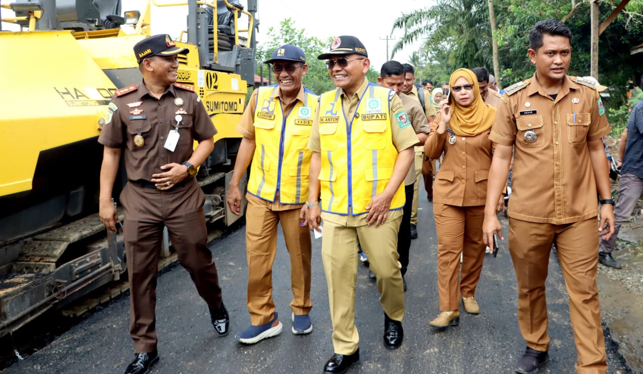 Saat berada di lokasi pengaspalan di Kecamatan Tapian Dolok, Bupati Anton Ahmad Saragih menekankan pentingnya kerja sama antara pemerintah lokal dengan pihak swasta dan masyarakat.