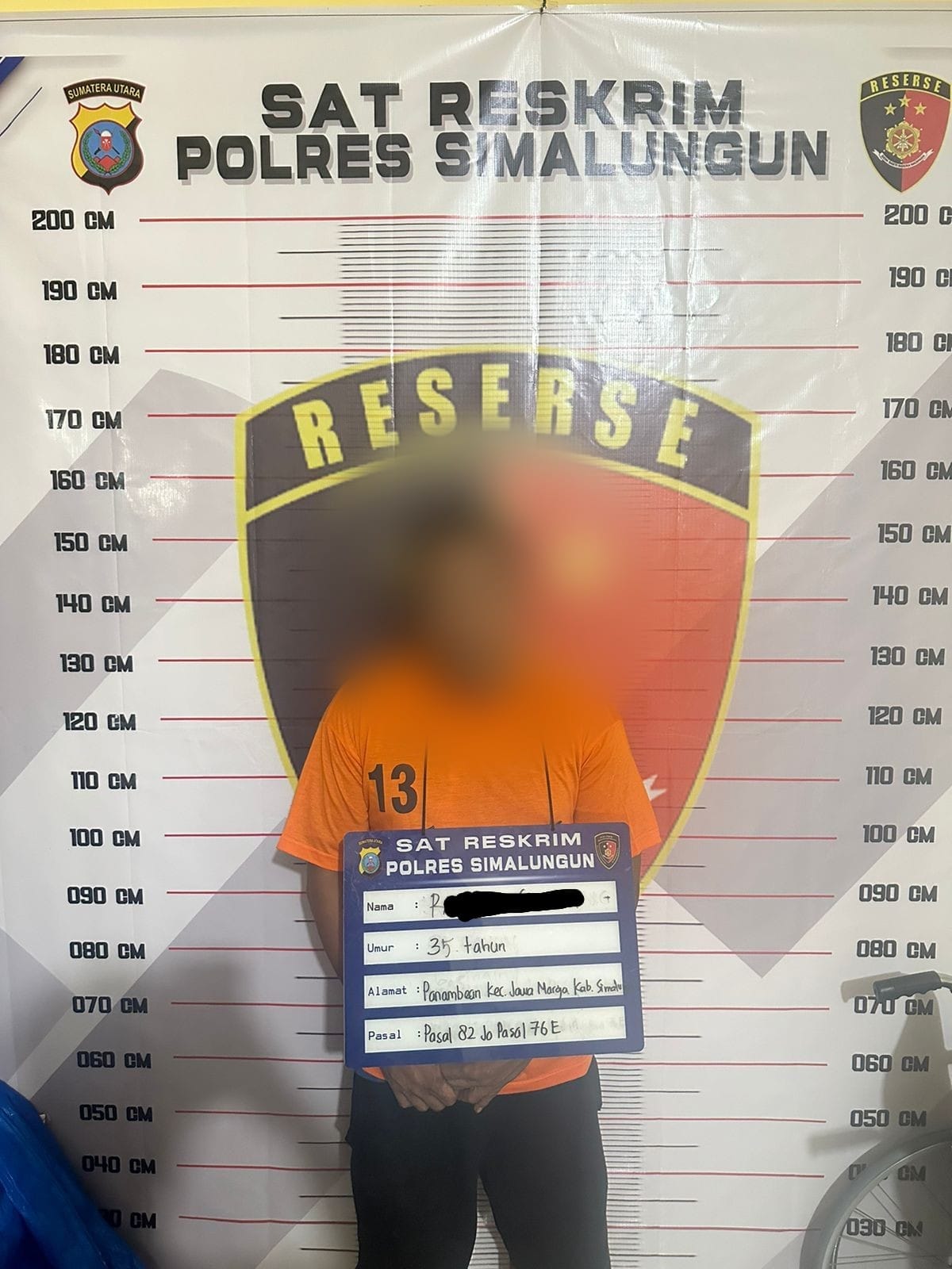Kejadian itu segera dilaporkan ke Polres Simalungun. Berkat laporan tersebut, polisi berhasil melacak keberadaan pelaku dan menangkapnya di rumahnya, Selasa (7/5/2024), sekitar pukul 17.00 WIB.