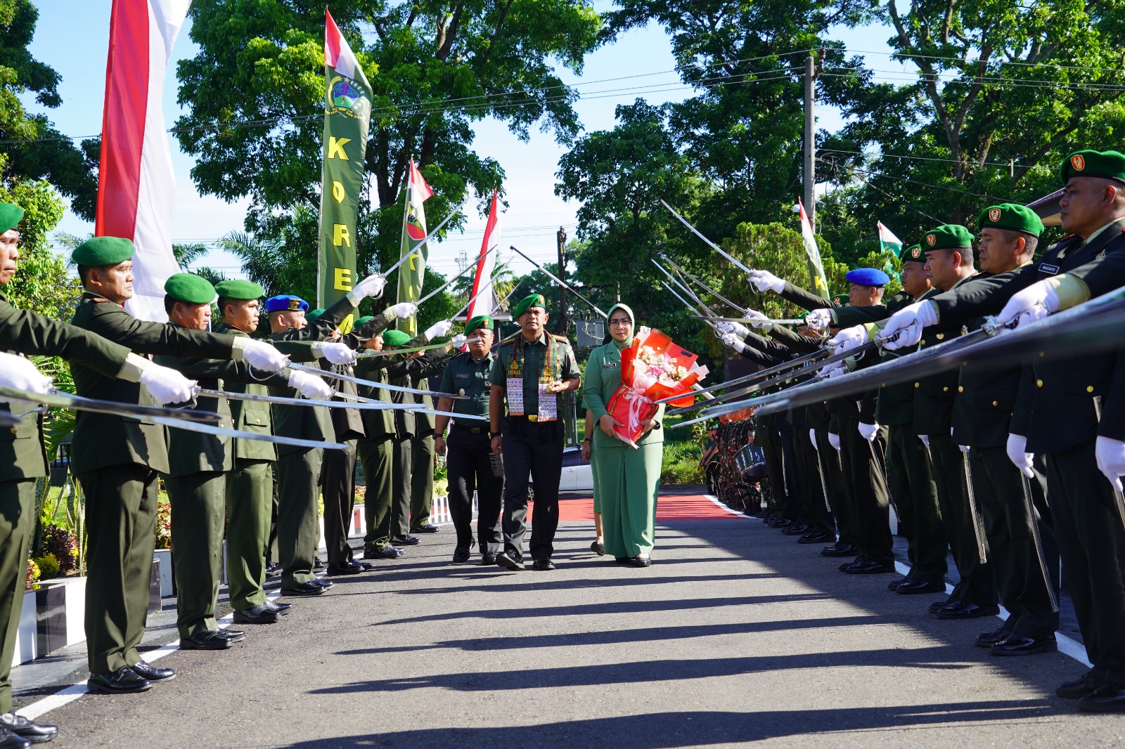 Korem 022/Pantai Timur menggelar acara penyambutan Danrem 022/PT yang baru, Kolonel Inf Agus Supriyono, beserta Ketua Persit KCK Koorcabrem 022 PD I/BB Ny. Arin Agus Supriyono, bertempat di Markas Korem 022/PT, Pematangsiantar, Kamis (17/4/2024).