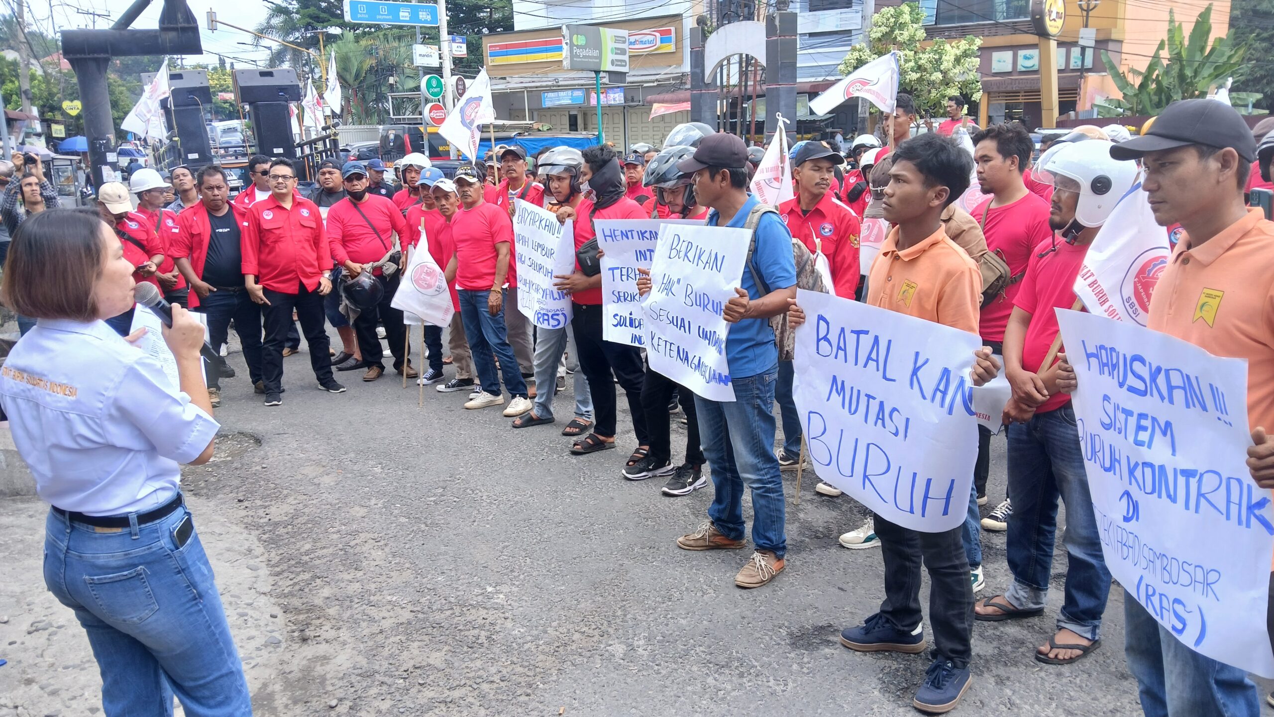 Nurlina Pakpahan sebagai Bendahara SBSI melalui orasinya mengatakan,  PT Rejeki Abadi Sambosar sebagai perusahaan kelapa sawit  di Kecamatan Raya Kahean, Kabupaten Simalungun tidak membayar upah lembur sebanyak 12 karyawan.