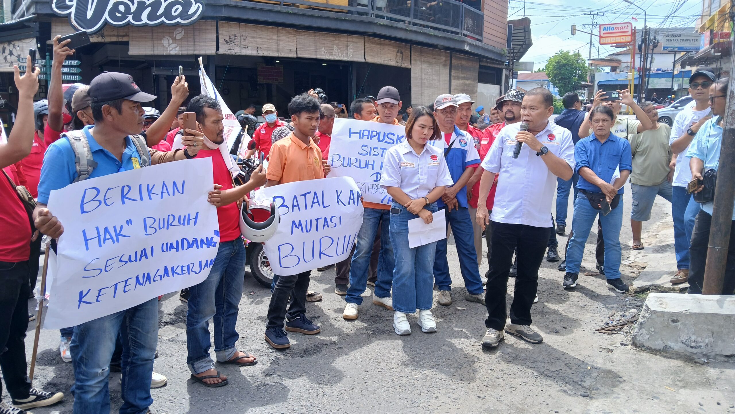 Datangi Kantor Disnaker di Siantar, SBSI Tuntut PT Rejeki Abadi Sambosar Bayar Upah Lembur