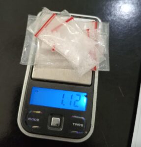 Pada saat dilakukan penggeledahan, yang disaksikan oleh kepala lingkungan, Mangapul Pakpahan, S.T., polisi menemukan barang bukti narkoba jenis sabu di dalam dompet merah, yang disimpan di atas tunggul kayu di samping kamar mandi rumah tersangka. Barang bukti tersebut meliputi lima buah plastik klip kecil yang diduga berisi sabu dengan total berat 1.12 gram dan empat buah plastik klip kecil lainnya yang ditawarkan dengan harga paket Rp.100.000. Selain itu, sebuah plastik klip kecil berisi sabu dijual seharga Rp.50.000, beserta satu buah sekop dari pipet plastik, “jelas AKP Irvan.