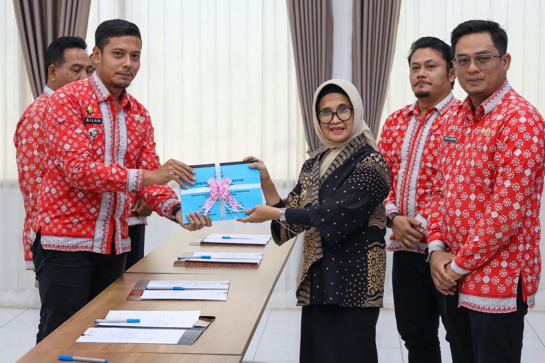 Wali Kota Pematangsiantar dr Susanti Dewayani SpA menyerahkan Daftar Himpunan Ketetapan Pajak (DHKP) dan Surat Pemberitahuan Pajak Terutang Pajak Bumi dan Bangunan Perdesaan dan Perkotaan (SPPT PBB-P2) Tahun 2025 kepada para camat dan lurah se-Kota Pematangsiantar. Penyerahan DHKP dan PBB-P2 Tahun 2025 tersebut dilaksanakan di Ruang Serbaguna Pemerintah Kota (Pemko) Pematangsiantar, Kamis (13/02/2025) siang.