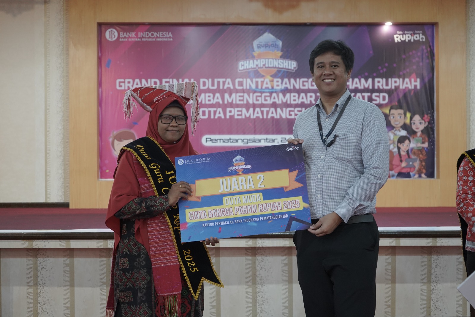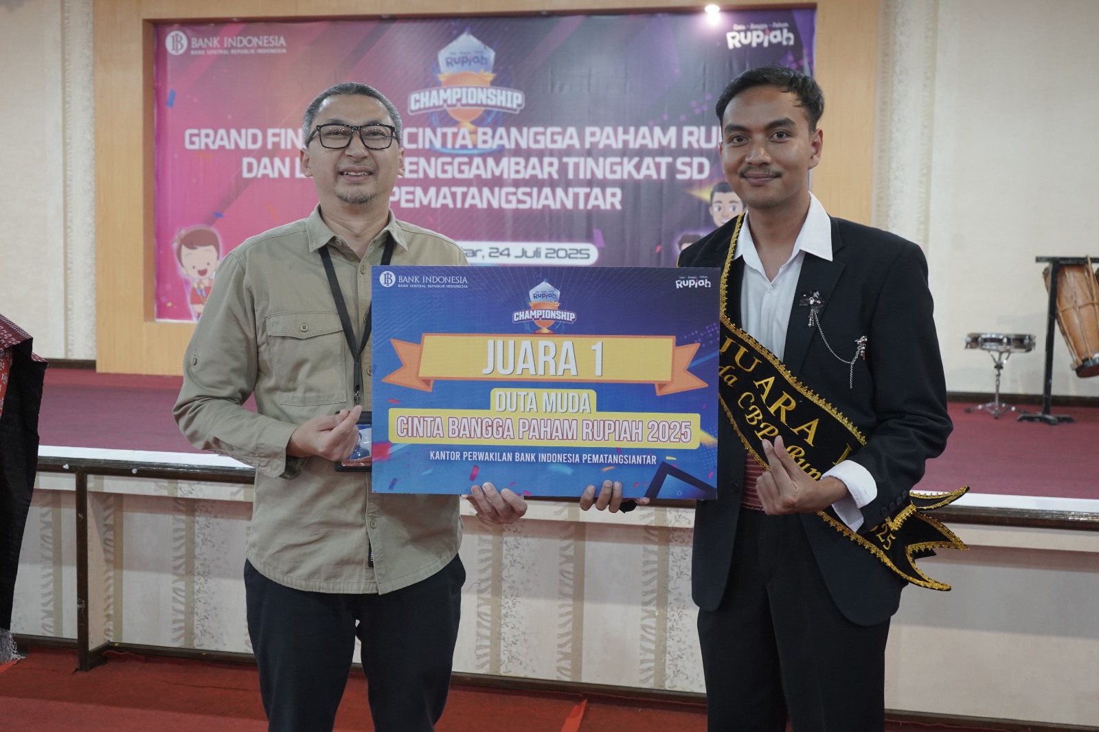 Final dan penganugerahan pemenang ditutup dengan penyerahan hadiah kepada para Juara. Para pemenang akan menjadi Duta CBP Rupiah Kota Pematangsiantar 2025 dan berperan aktif dalam kegiatan edukasi dan literasi bersama Bank Indonesia.