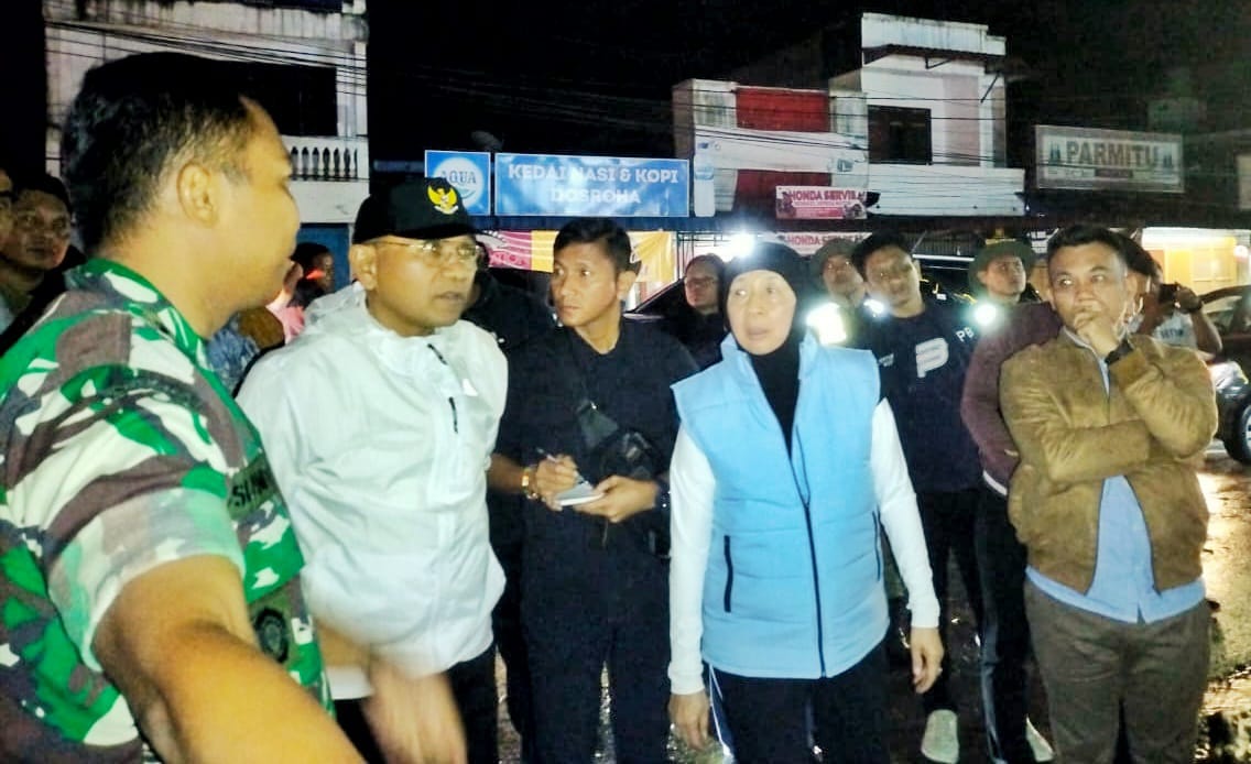 Bupati Simalungun Anton Achmad Saragih melakukan tindakan gerak cepat (gercep) guna menangani banjir bandang yang melanda kota Parapat Kecamatan Girsang Sipangan Bolon, Parapat, Simalungun, Sumut, Minggu malam (16/3/2025)