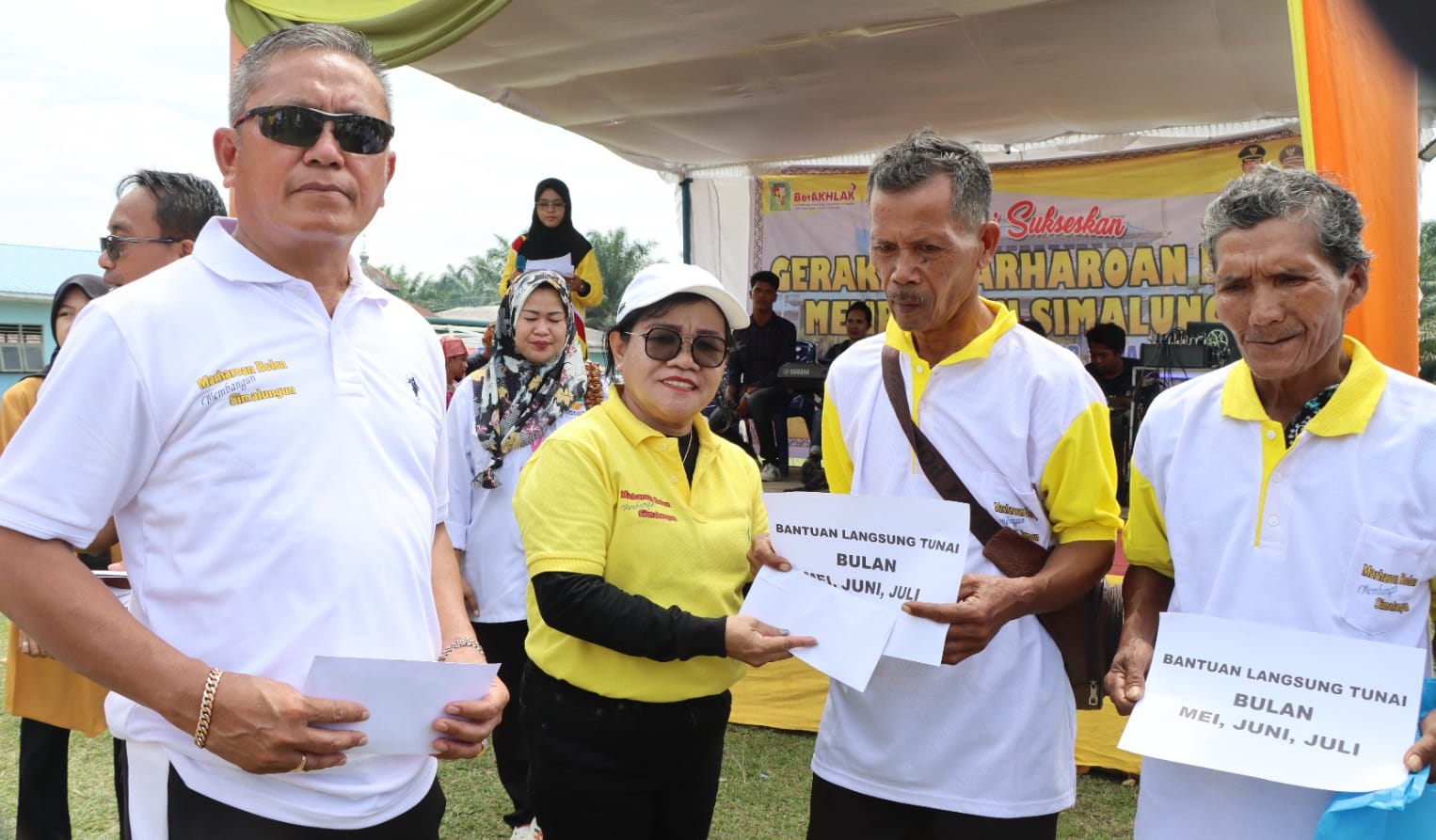 Giat Haroan Bolon tersebut juga dirangkai dengan penyaluran bantuan BLT dari dana desa, bantuan susu dan kacamata baca kepada Lansia, insentif guru ngaji dan guru sekolah minggu, oven dan mixer kepada pelaku UMKM, dan bantuan jalan usaha tani produksi perkebunan kepada kelompok tani Lestari Jaya Nagori Boluk.