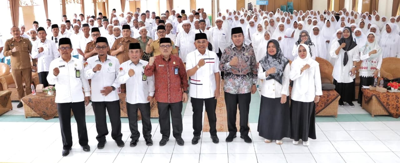 Tampak hadir antara lain, Prof. Dr. Mutakin, M.Ag, perwakilan perangkat daerah, camat, pengurus haji dan umroh, tim kesehatan haji, pendamping haji dan para KUA se Kabupaten Simalungun. (*)