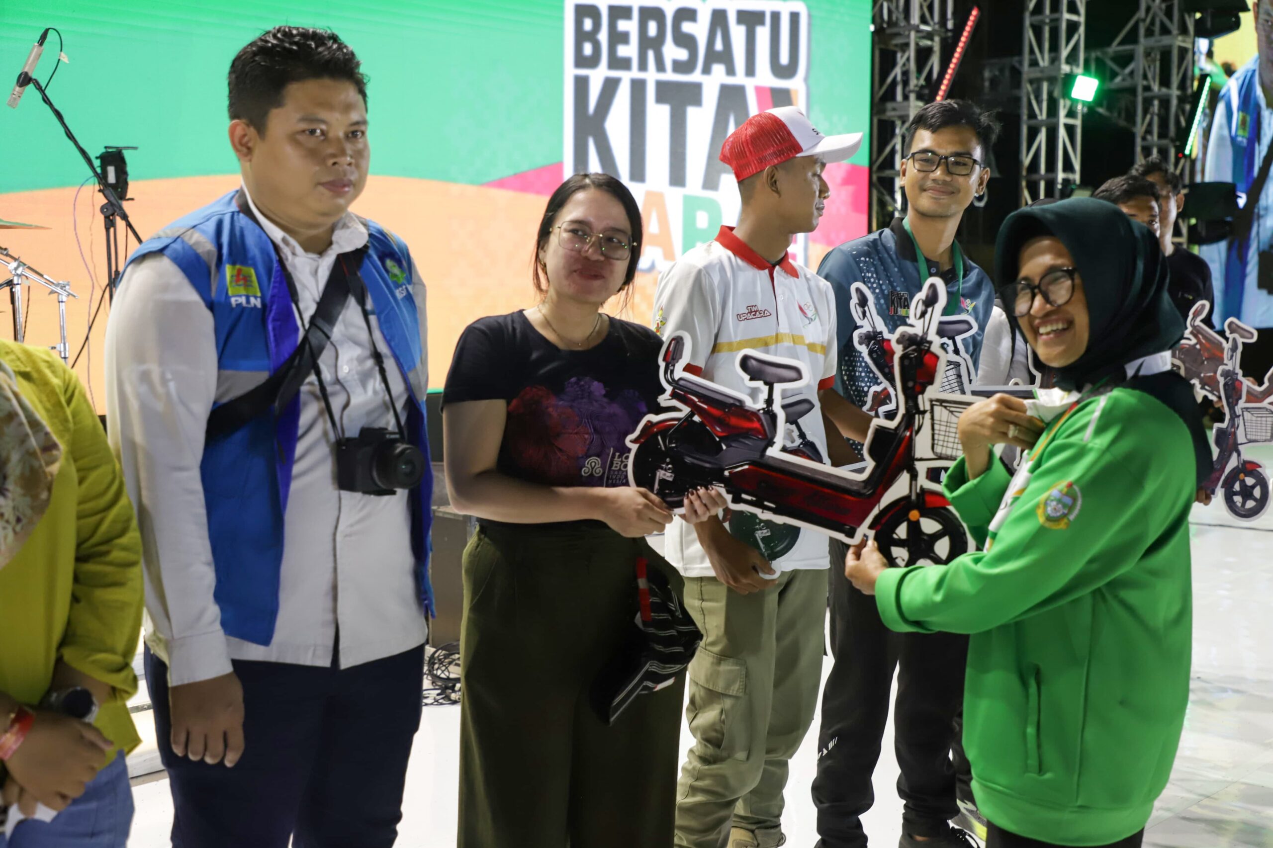 Bersama Pj Wali Kota Padangsidimpuan H Timur Tumanggor SSos MAP, dr Susanti didaulat memberikan hadiah lucky draw kepada pemenang kupon undian, yaitu sepeda listrik.