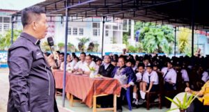Dalam kesempatan itu, Bupati menyampaikan bahwa, ke depannya akan meluangkan waktu untuk berinteraksi dengan para siswa/i SMP Negeri 1 Purba-Tiga Runggu.