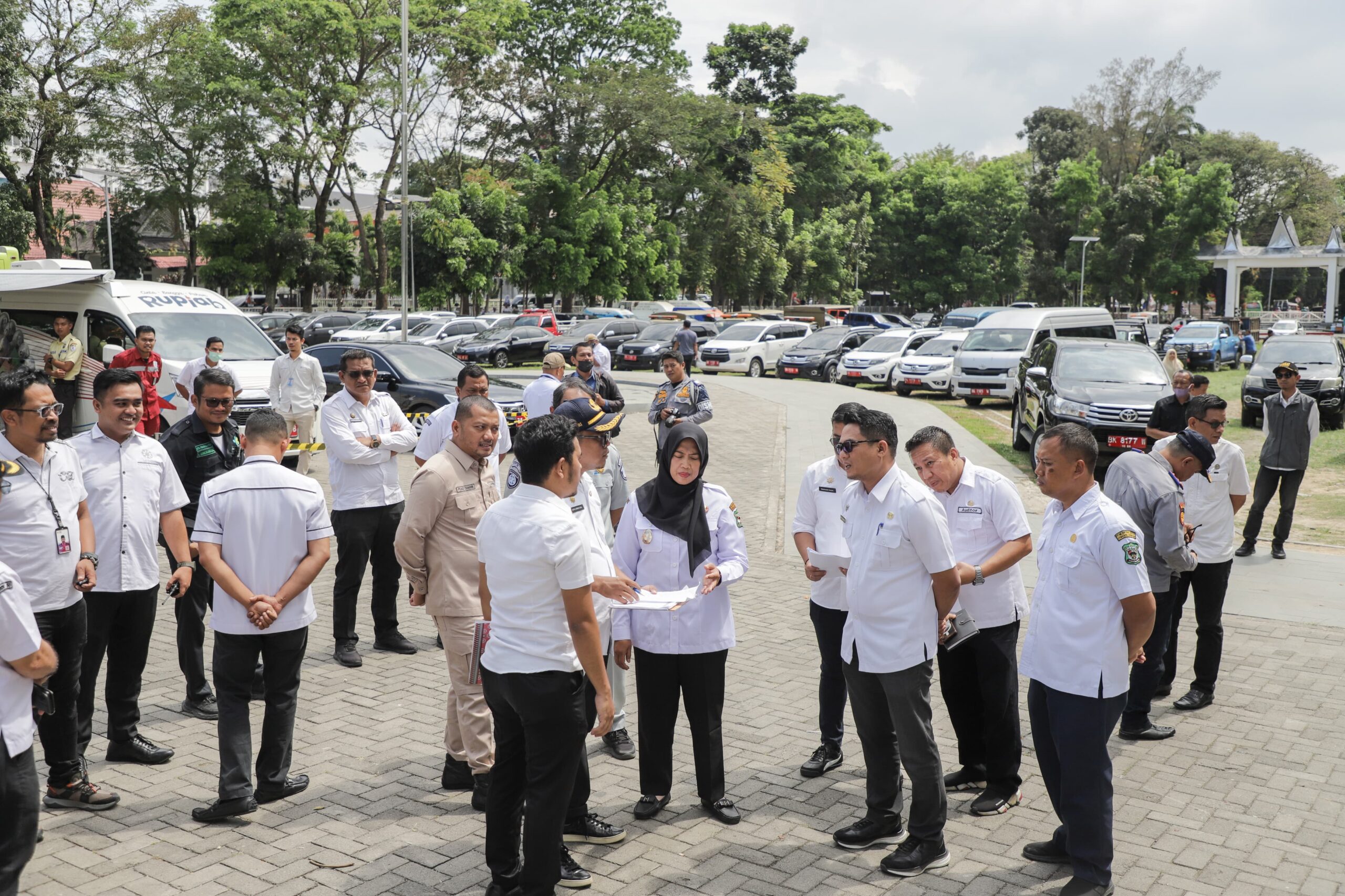 Wali Kota Pematangsiantar Wesly Silalahi SH MKn diwakili Wakil Wali Kota Herlina melakukan cek atau pemeriksaan 205 unit kendaraan dinas Pemerintah Kota (Pemko) Pematangsiantar.