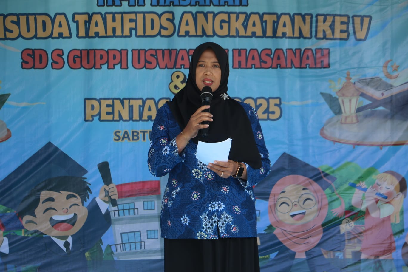 Wakil Wali Kota Pematangsiantar Herlina menghadiri acara Wisuda Angkatan II TK-IT dan Wisuda Tahfidz Angkatan V SDGerakan Usaha Pembaruan Pendidikan Islam (GUPPI) Uswatun Hasanah, di Jalan Medan Km 4,5 Gang Pendidikan Kelurahan Sumber Jaya Kecamatan Siantar Martoba, Sabtu (21/06/2025).