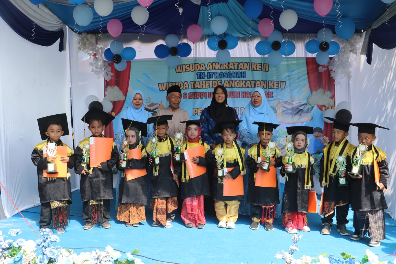 Acara wisuda dirangkai pentas seni dengan tema “Berakhlakul Karimah, Berprestasi, dan Berbudaya”.