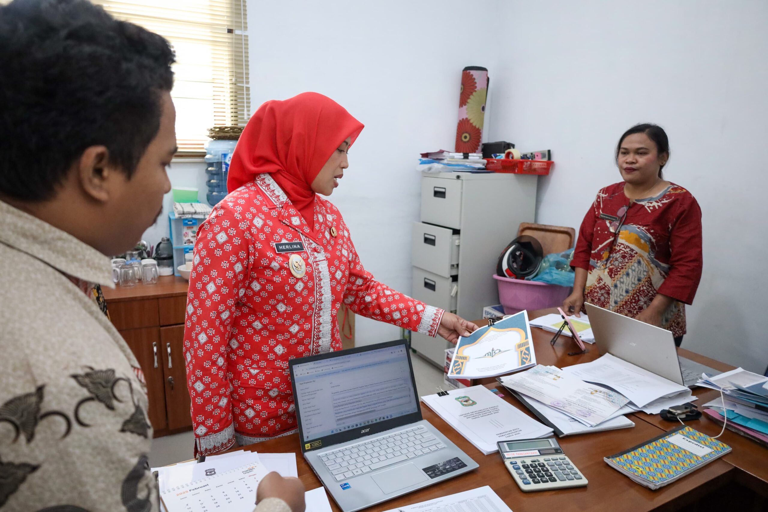 Di kantor tersebut, Herlina menyapa para pegawai yang sedang bekerja dan memberikan motivasi agar para pegawai serta petugas kebersihan lebih disiplin.