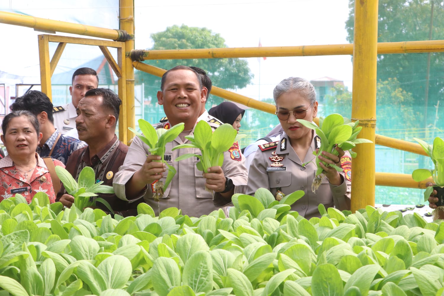 Kapolres Simalungun AKBP Marganda Aritonang SH SIK MM turun langsung ke lahan pertanian Lapas Kelas IIA Pematangsiantar untuk menyaksikan panen raya serentak sekaligus menyapa para warga binaan yang bekerja keras mengolah lahan produktif.