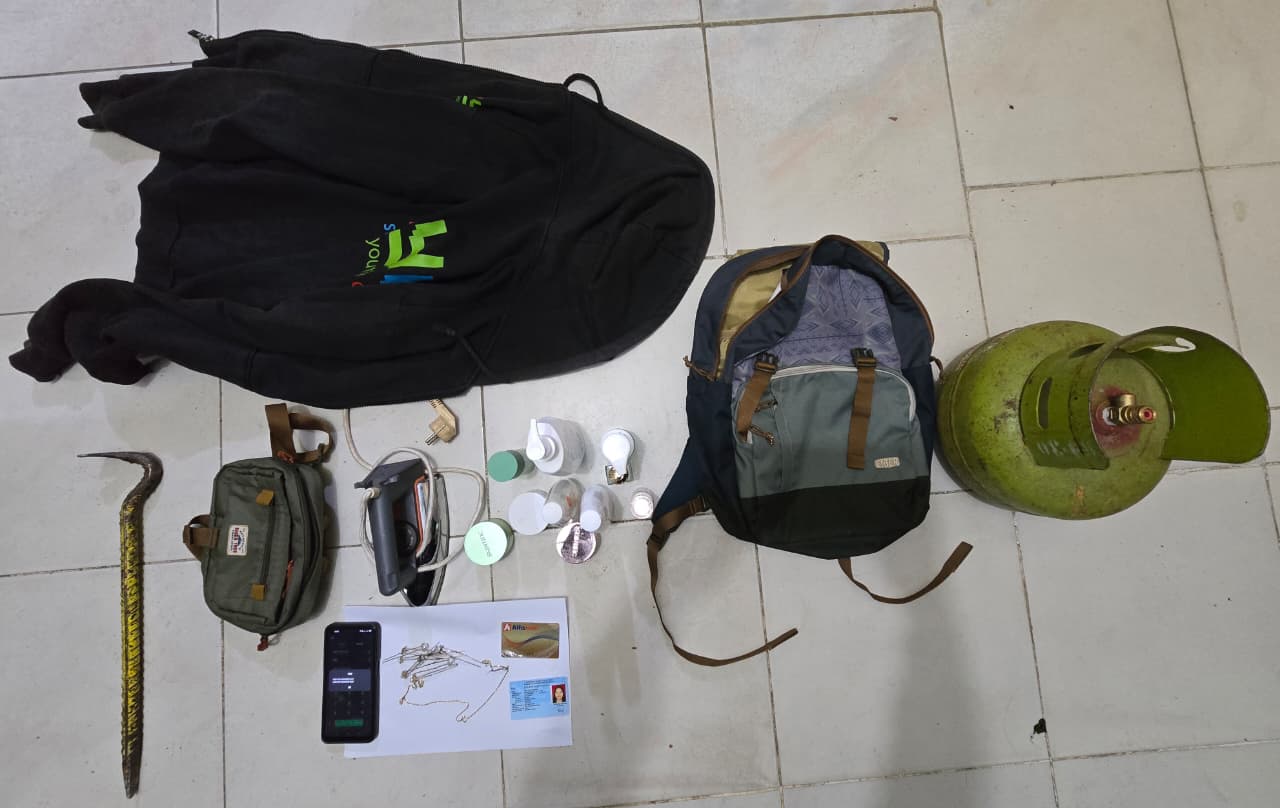 Petugas kemudian membawa tersangka ke rumahnya dan berhasil mengamankan sebagian barang bukti, antara lain handphone merk OPPO A54 milik korban, kalung emas seberat dua mayam, tabung gas 3 kg, sisa paket skincare, dua tas merk Eiger, setrika merk Maspion, KTP dan STNK korban, serta linggis yang digunakan untuk mencongkel pintu.