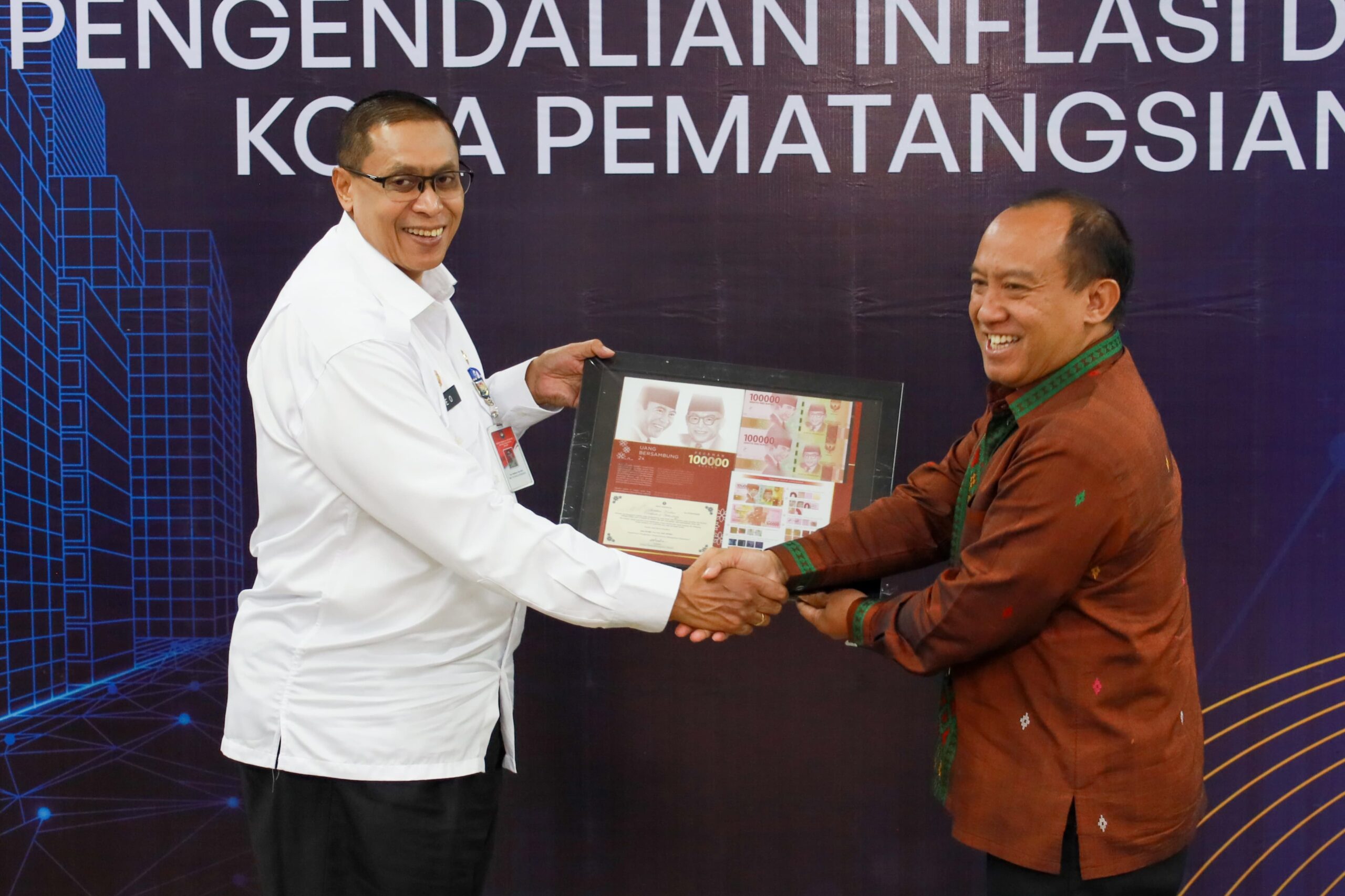 Dalam acara tersebut, Kepala KPw BI Pematangsiantar menyerahkan cenderamata kepada Matheos.