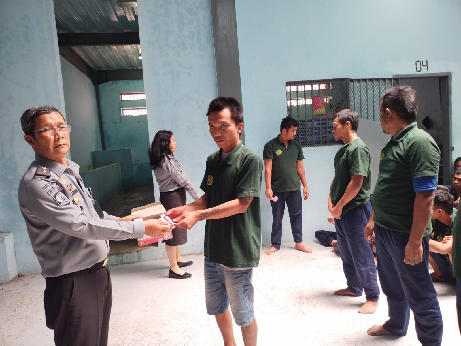 Kalapas Narkotika Kelas IIA Pematangsiantar Robinson Peranginangin diwakili Kepala Kesatuan Pengamanan Lembaga Pemasyarakatan (KPLP) Ucok Sinabang membagikan vitamin kepada warga binaan pemasyarakatan (WBP) yang baru selesai mengikuti program rehabilitasi sosial, Selasa (10/9/2024).