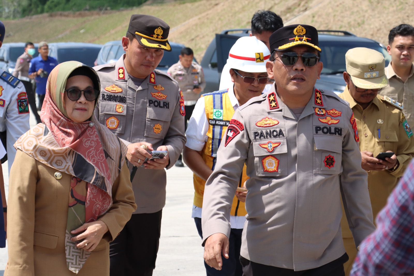 Kepala Kepolisian Daerah Sumatera Utara (Kapolda Sumut) Irjen Pol Panca Putra Simanjuntak didampingi Bupati Simalungun diwakili Wakil Bupati H Zonny Waldi meninjau infrastruktur Jalan Tol Sinaksak – Dolok Merawan, Kecamatan Tapian Dolok Kabupaten Simalungun, Sumut, Senin (10/4/2023).