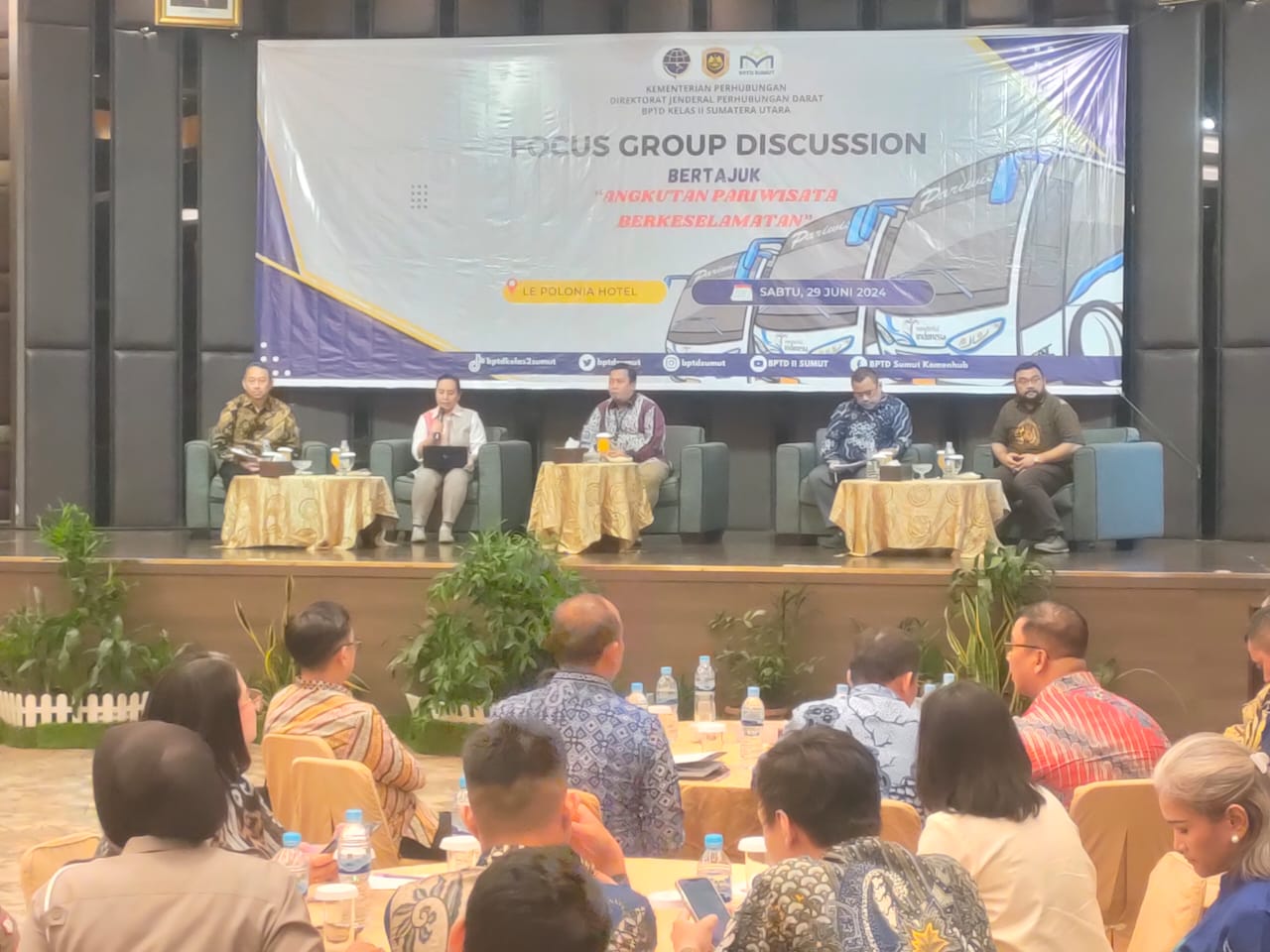 Kapolres diwakili Kasat Lantas Polres Simalungun, Iptu Jonni FH Sinaga menghadiri Focus Group Discussion (FGD) bertajuk “Angkutan Pariwisata yang Berkeselamatan”. berlangsung di Le Polonia Hotel, lantai 3, Medan, Sabtu (29/6/2024).