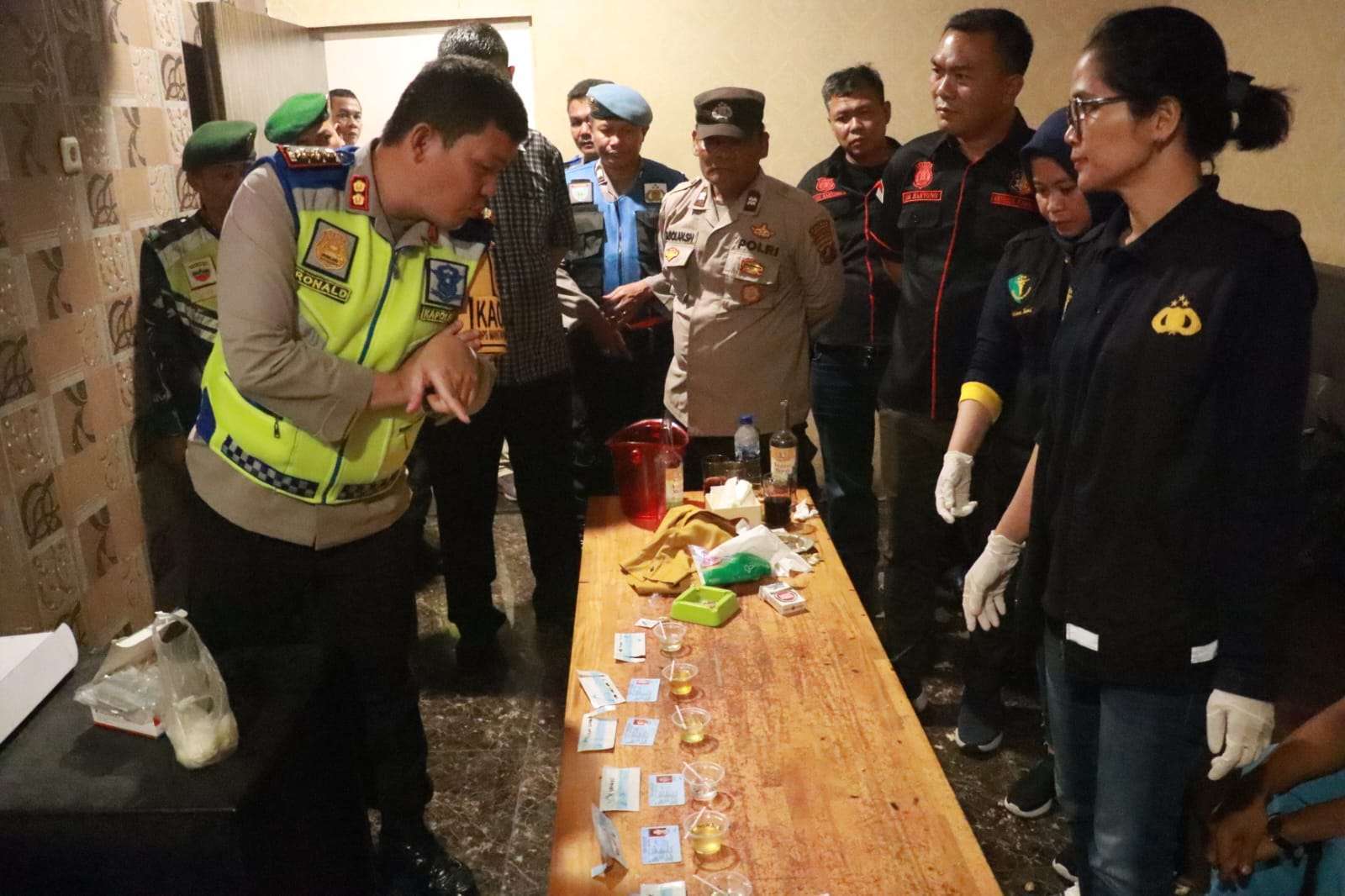 “Hari ini kita juga melakukan razia di tempat hiburan malam di Karoke Anda dan melakukan tes urine, kepada para pengunjung dan para pengawas serta penjaga tempat ini, kita ingin pastikan bahwa tempat-tempat hiburan seperti ini tidak ada dijadikan tempat penyalagunaan ataupun peredaran narkoba,”papar Ronald.