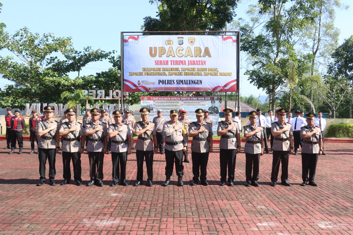 Upacara yang berlangsung di lapangan Mako Polres Simalungun ini menandai pergantian lima pejabat utama di lingkungan Polres Simalungun.