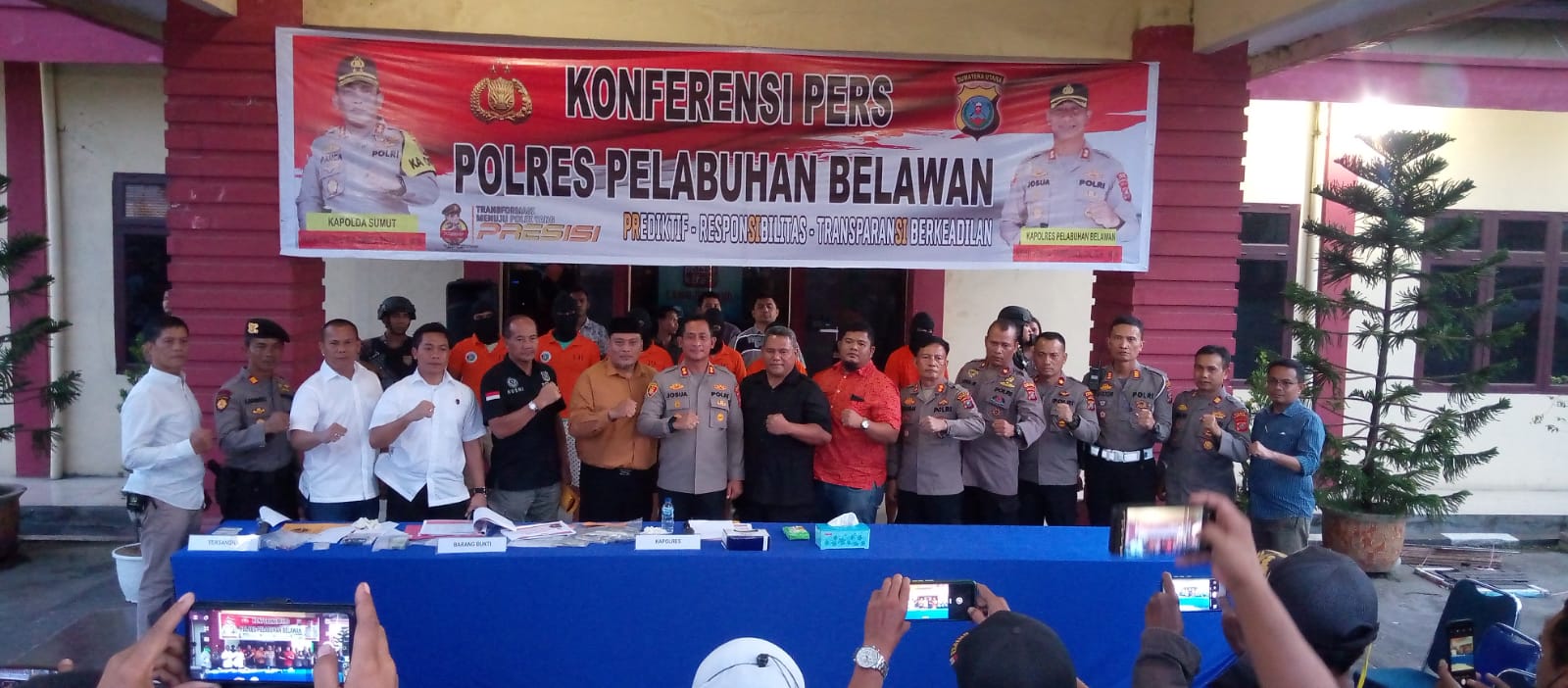 Polres Pelabuhan Belawan menggelar konferensi pers yang dipimpin Kapolres AKBP Josua Tampubolon SH MH, di halaman Mapolres Pelabuhan Belawan, pada Rabu (25/1/2023).